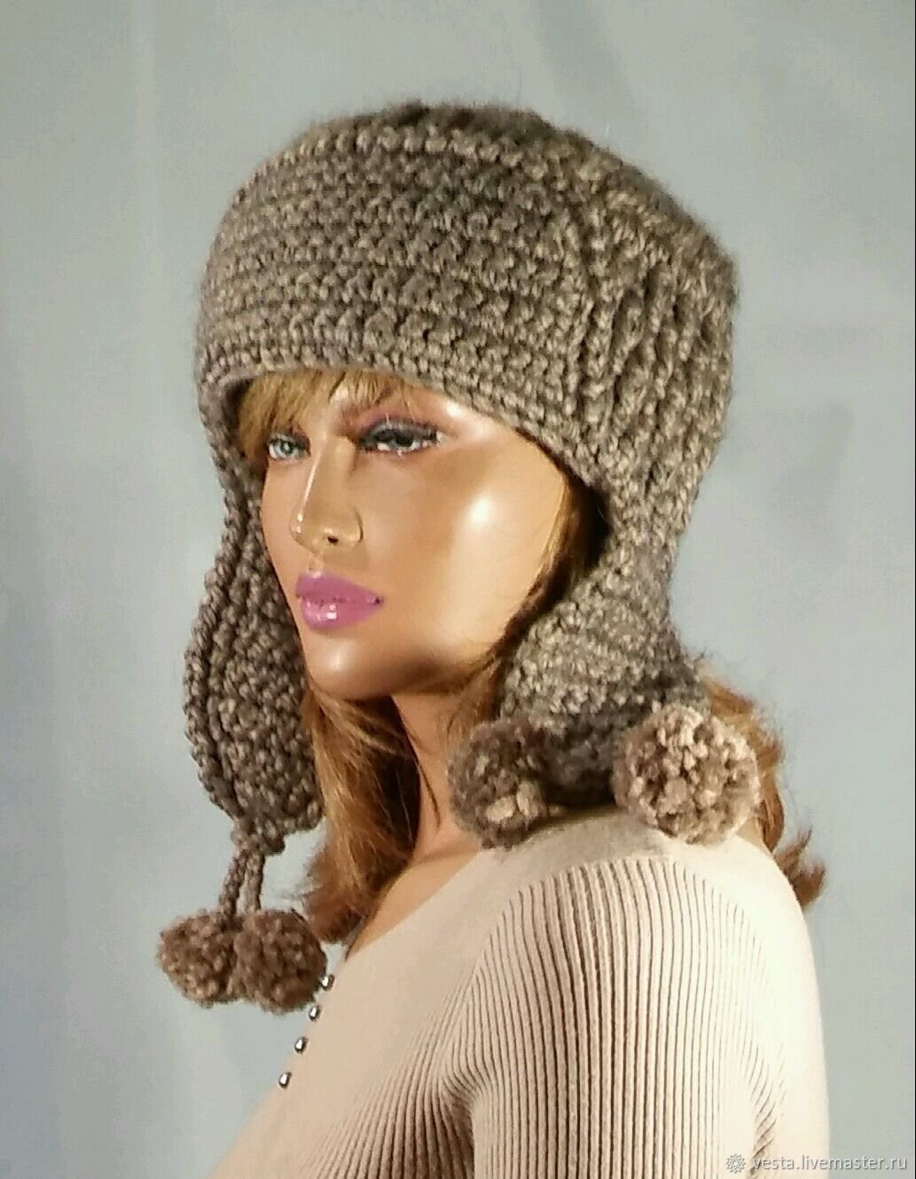 Шапка вязаная ушанка шлем женская la Vanda Knitwear