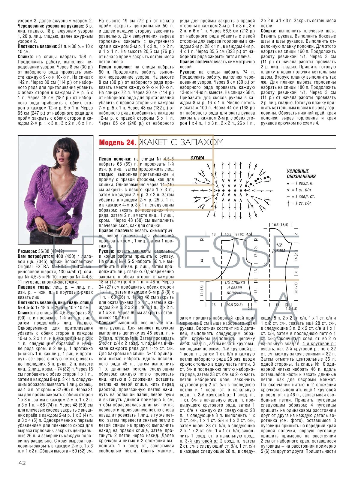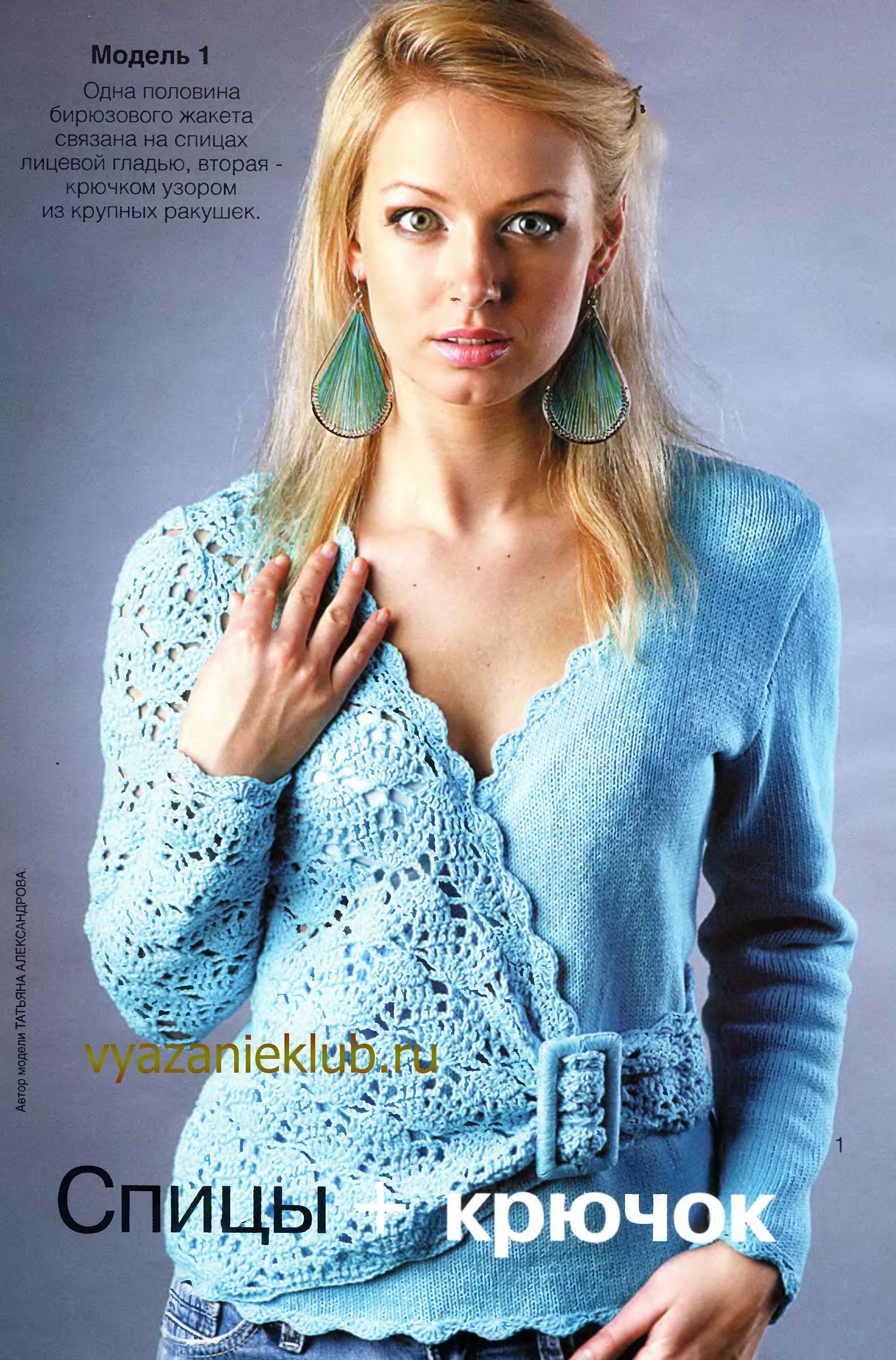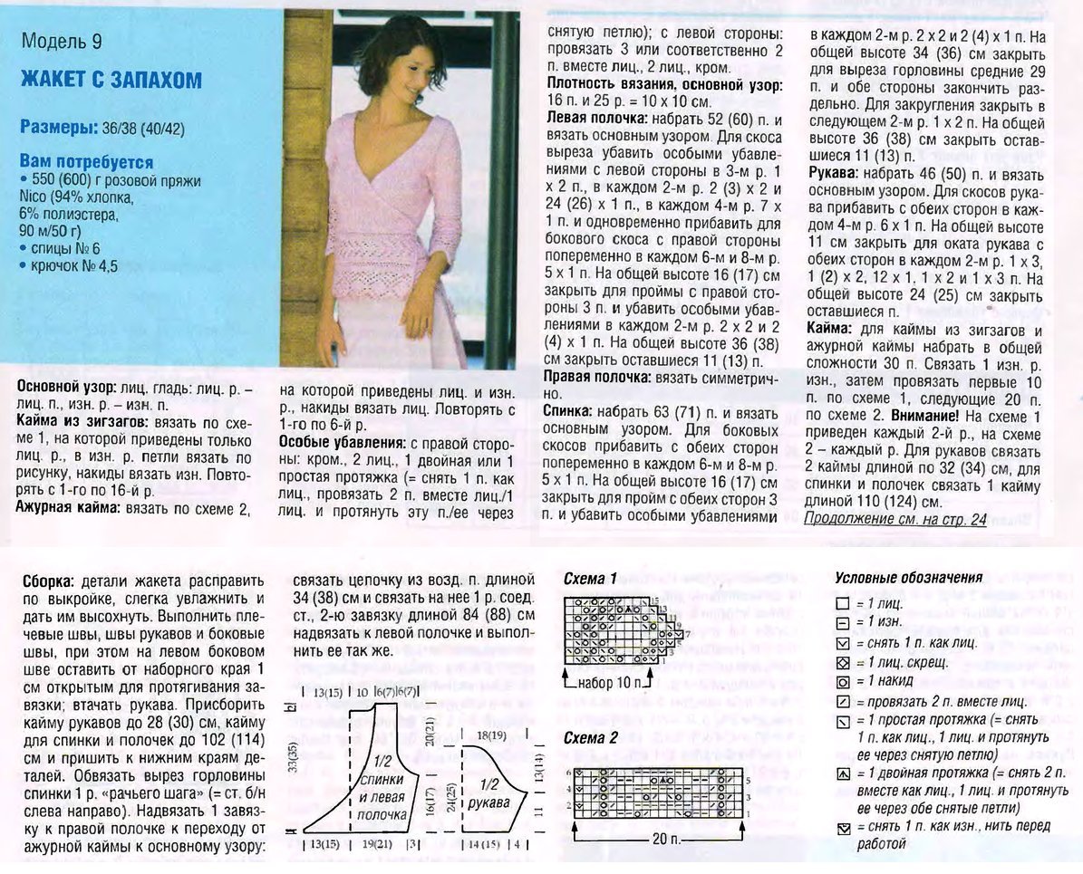 Жакет с запахом спицами схемы и описание