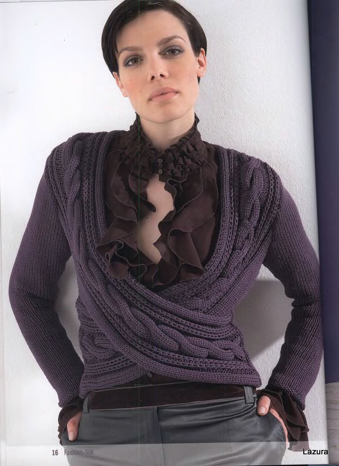 Кофта с запахом спицами схема