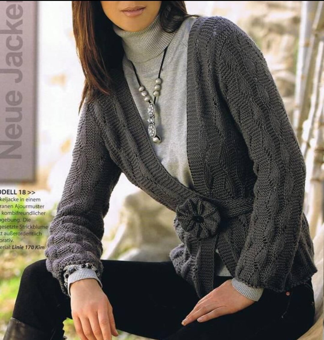 Вязаная кофта с запахом спицами [51 фото]