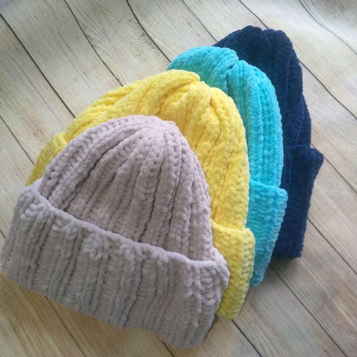 Детские шапки из плюшевой пряжи
