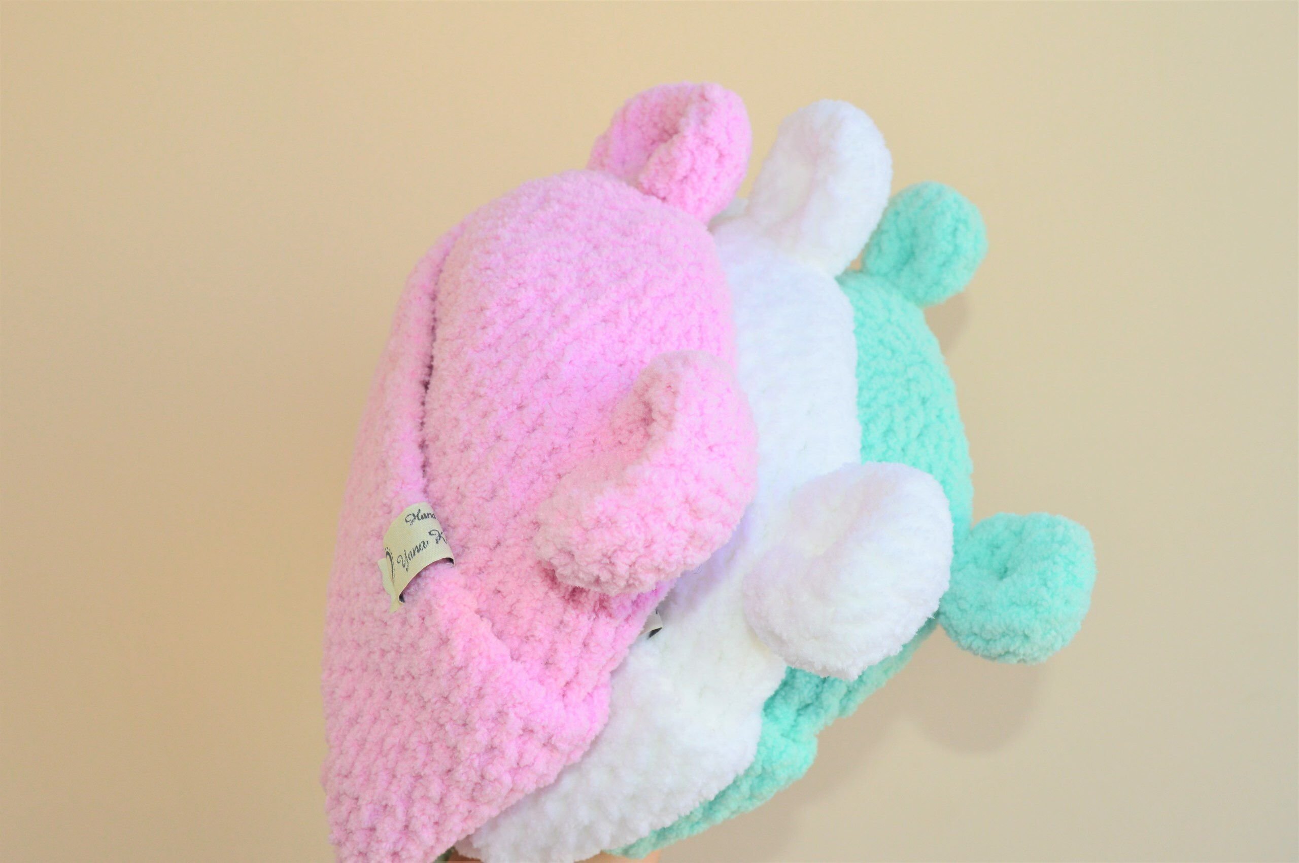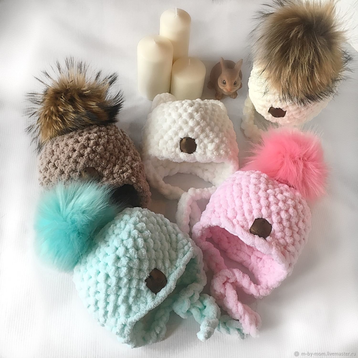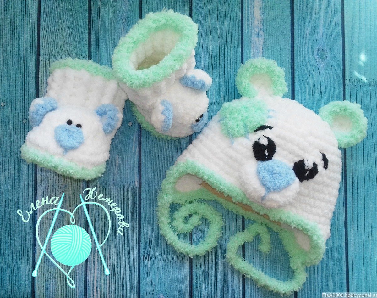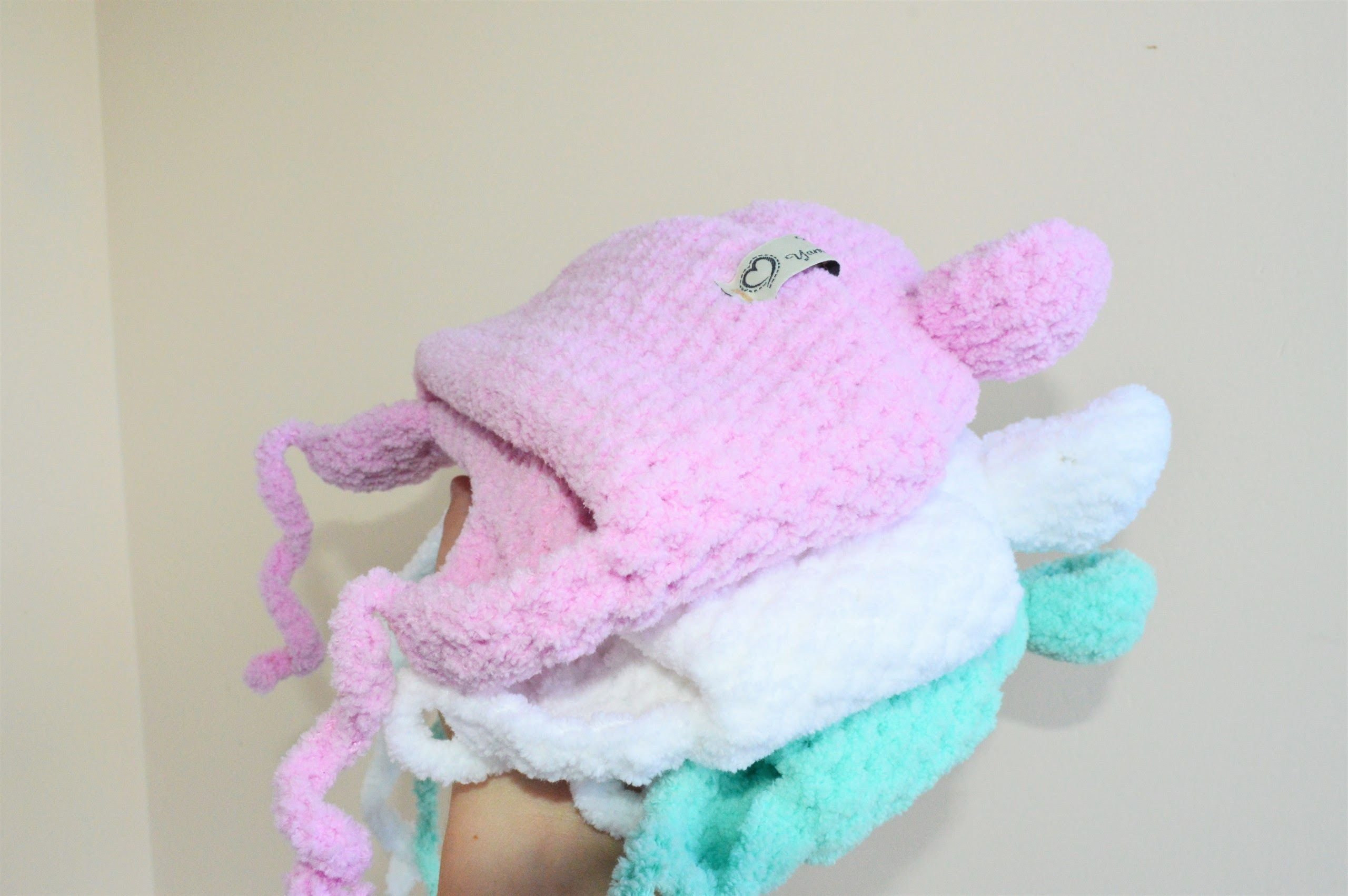 Шапочки из плюшевой пряжи крючком с ушками