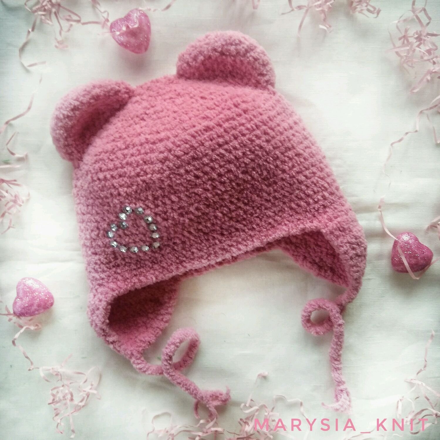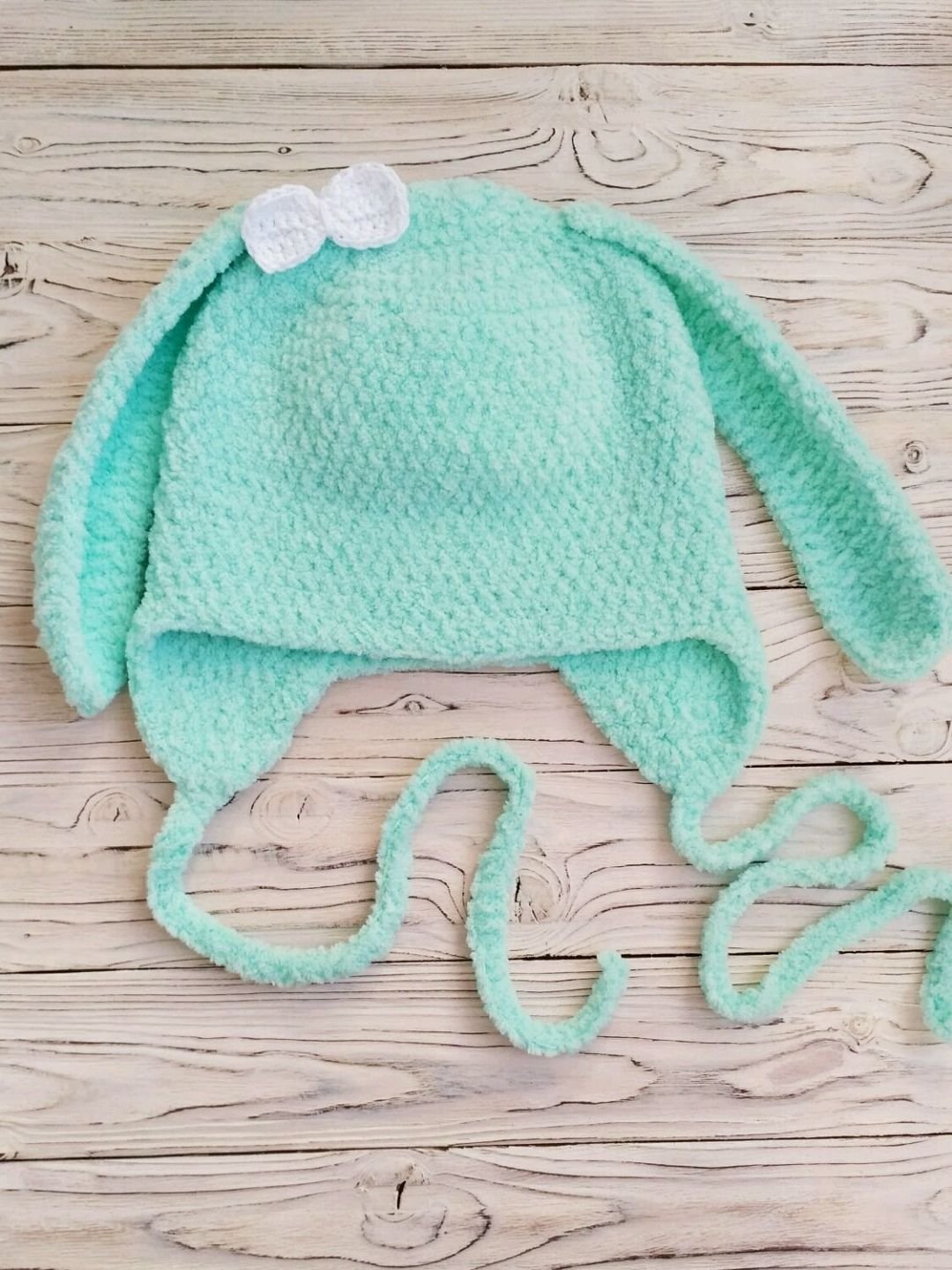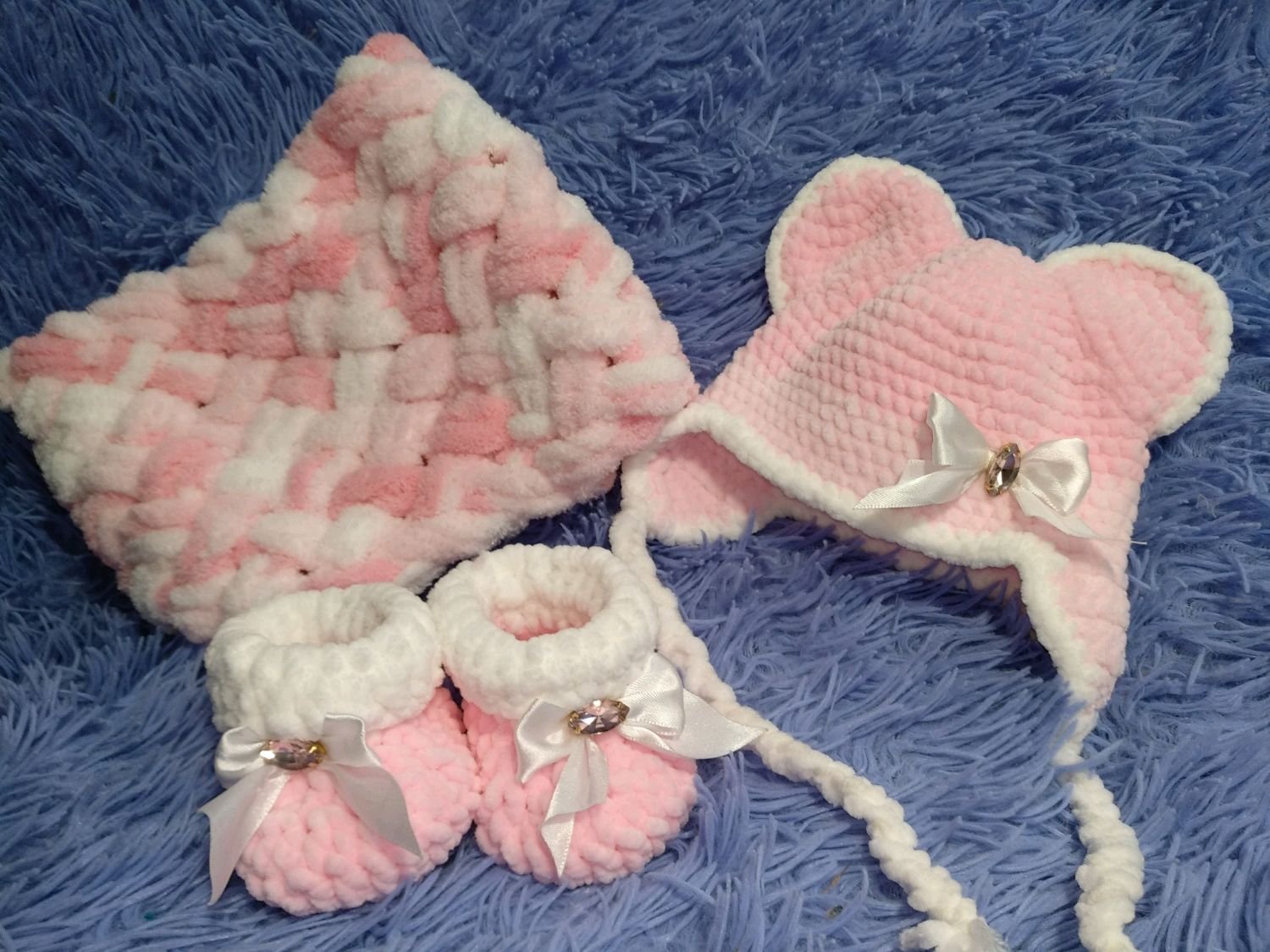 Шапочки из плюшевой пряжи крючком с ушками