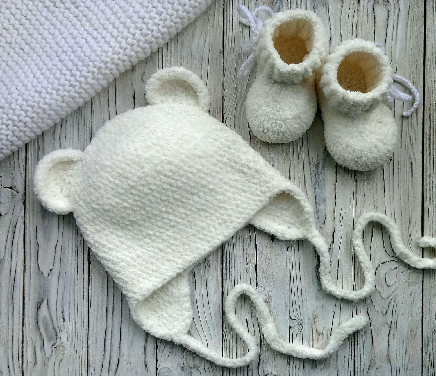 Шапочка для новорожденного из плюшевой пряжи