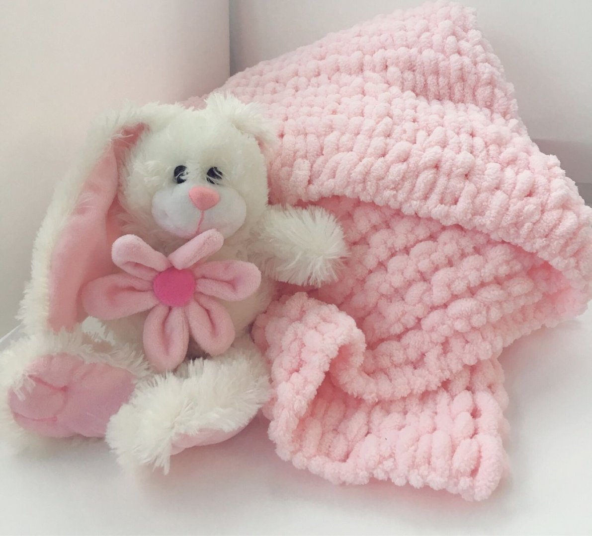 Детский плед из плюшевой пряжи с игрушкой