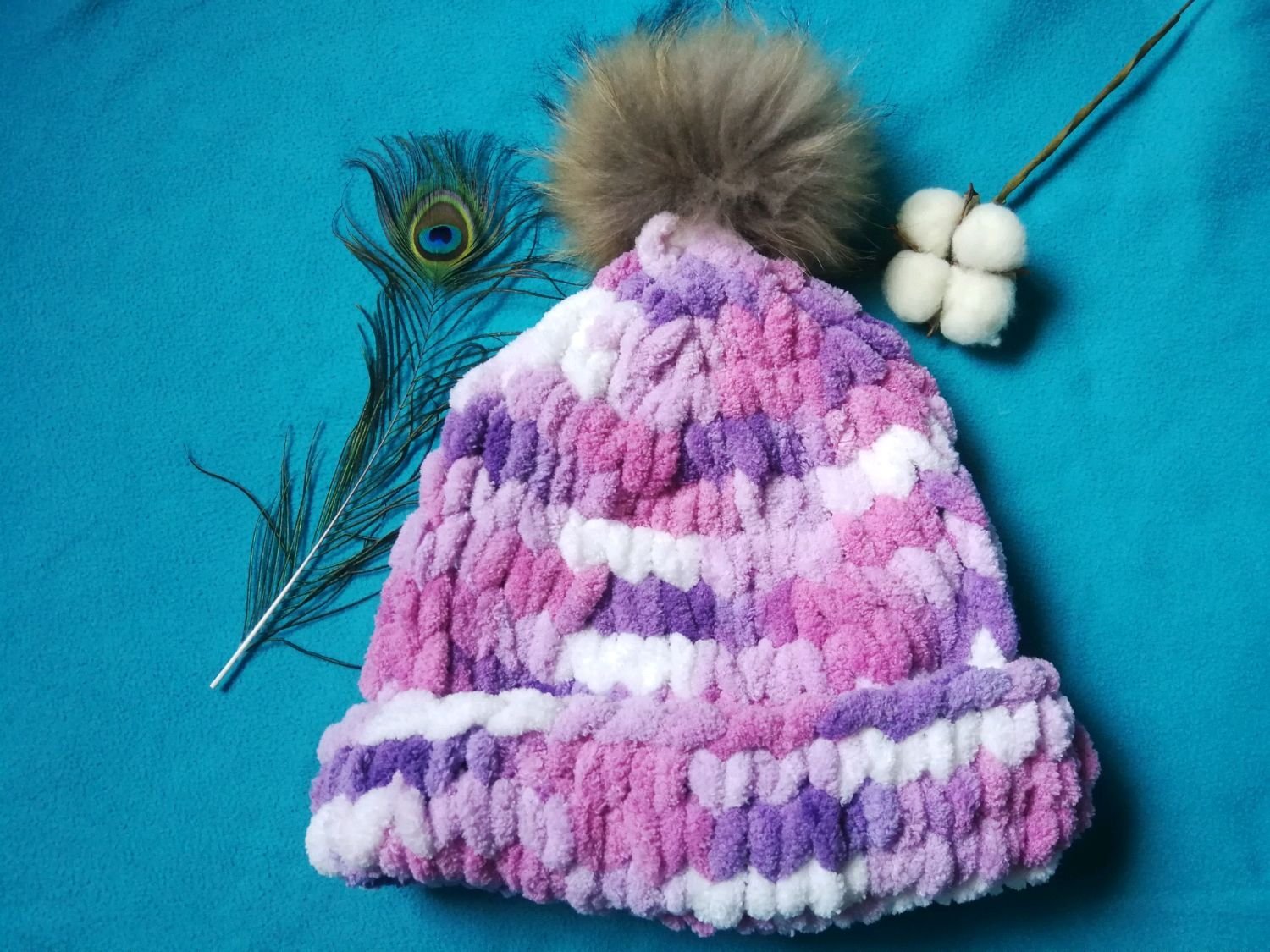 Шапка из плюшевых ниток