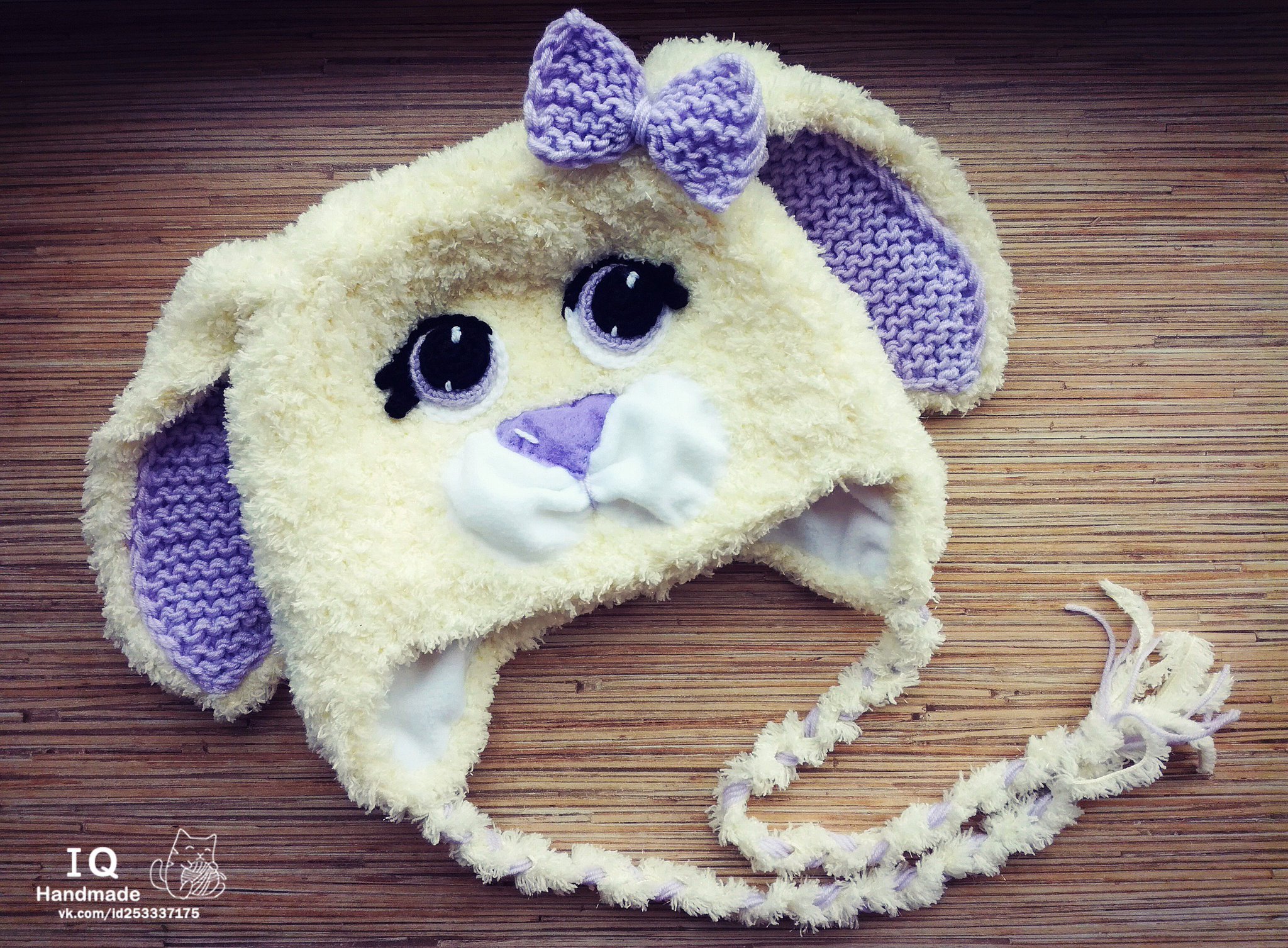 Плюшевая шапка с ушками вязаная