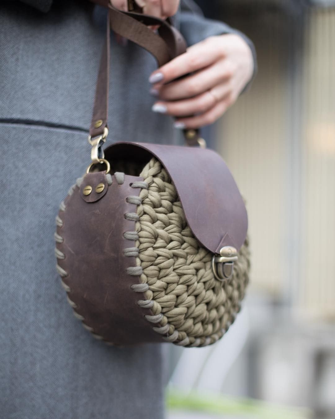 Вязаные сумки с кожей