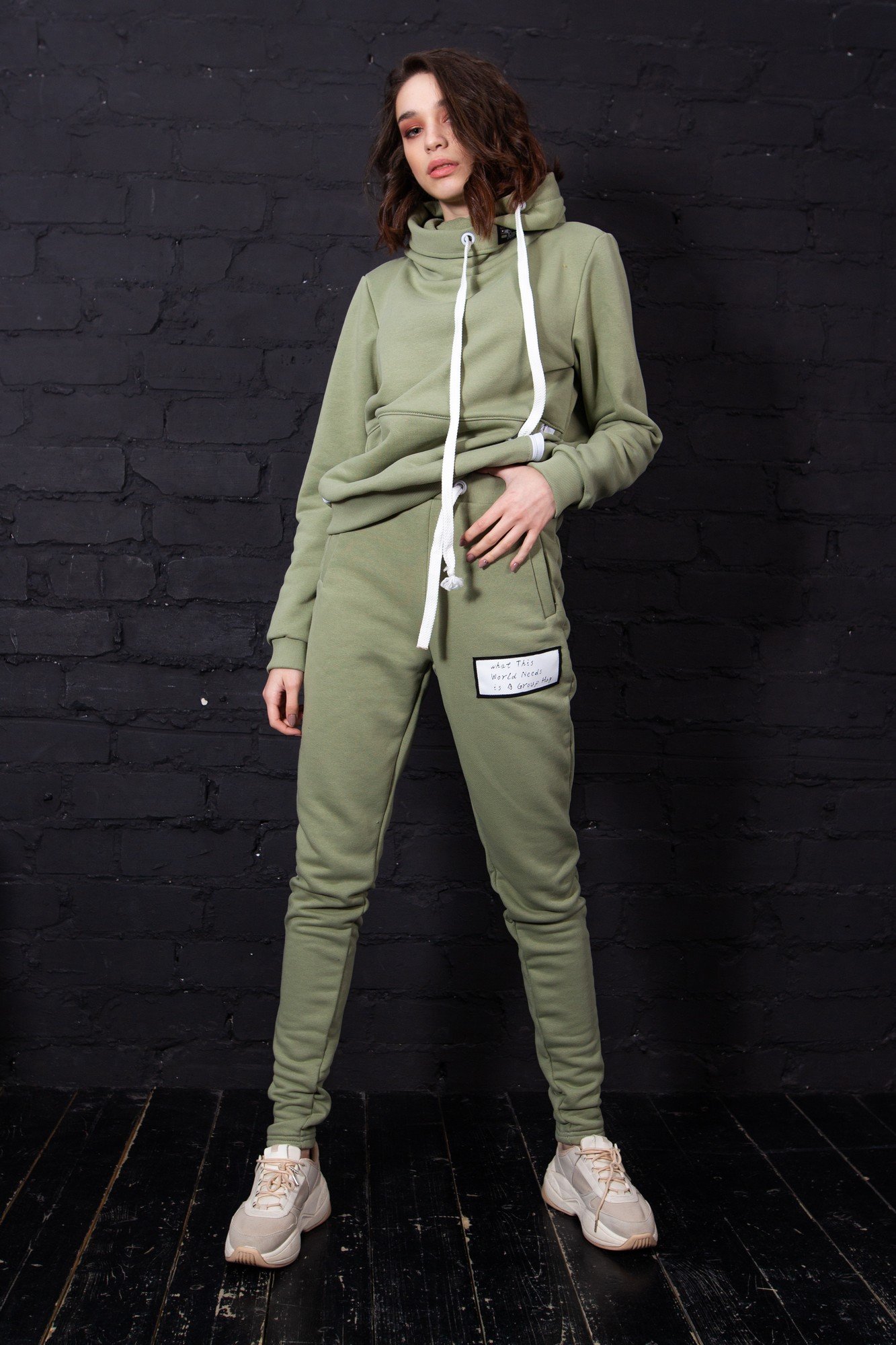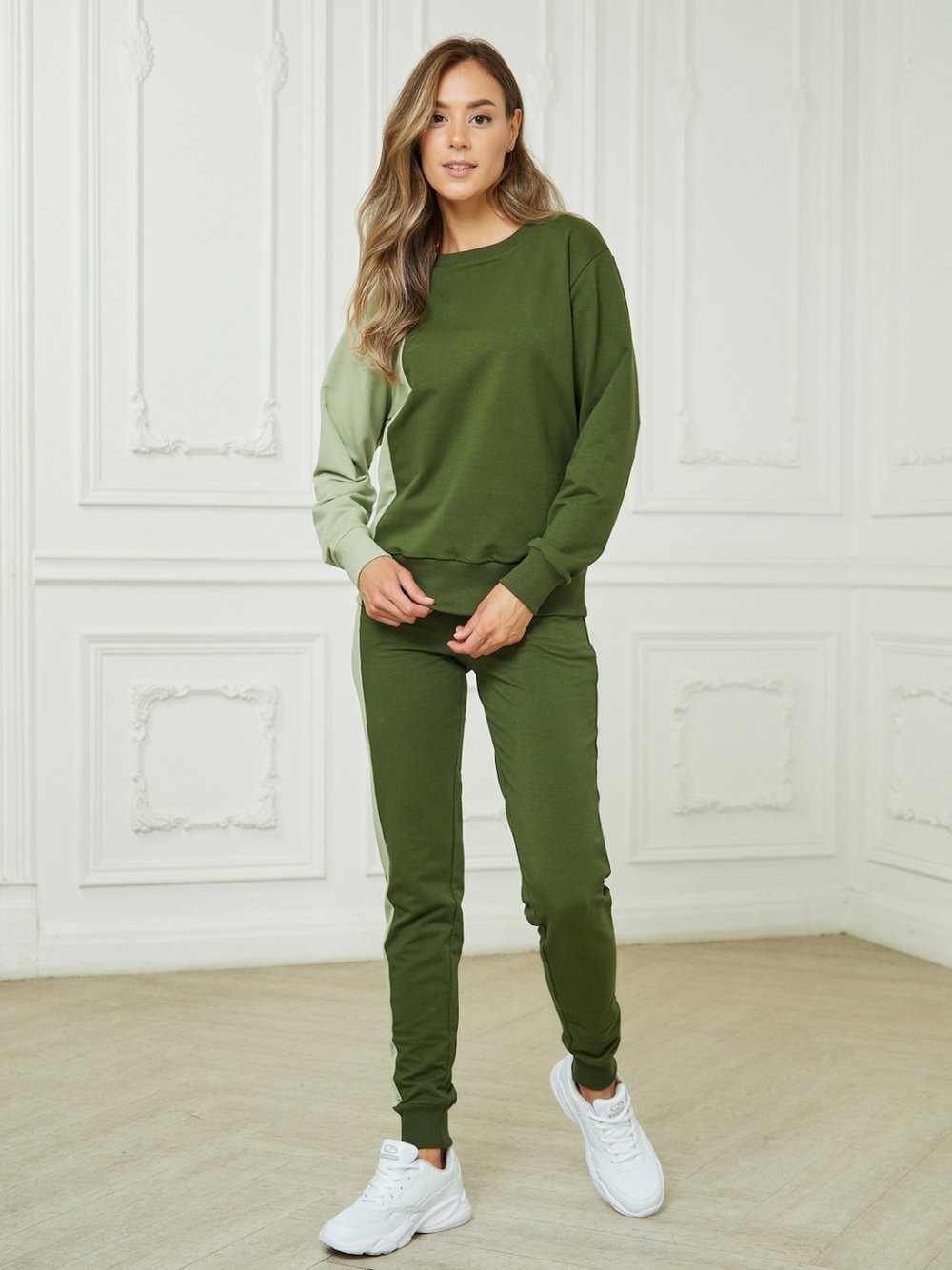 Оливковый спортивный костюм женский