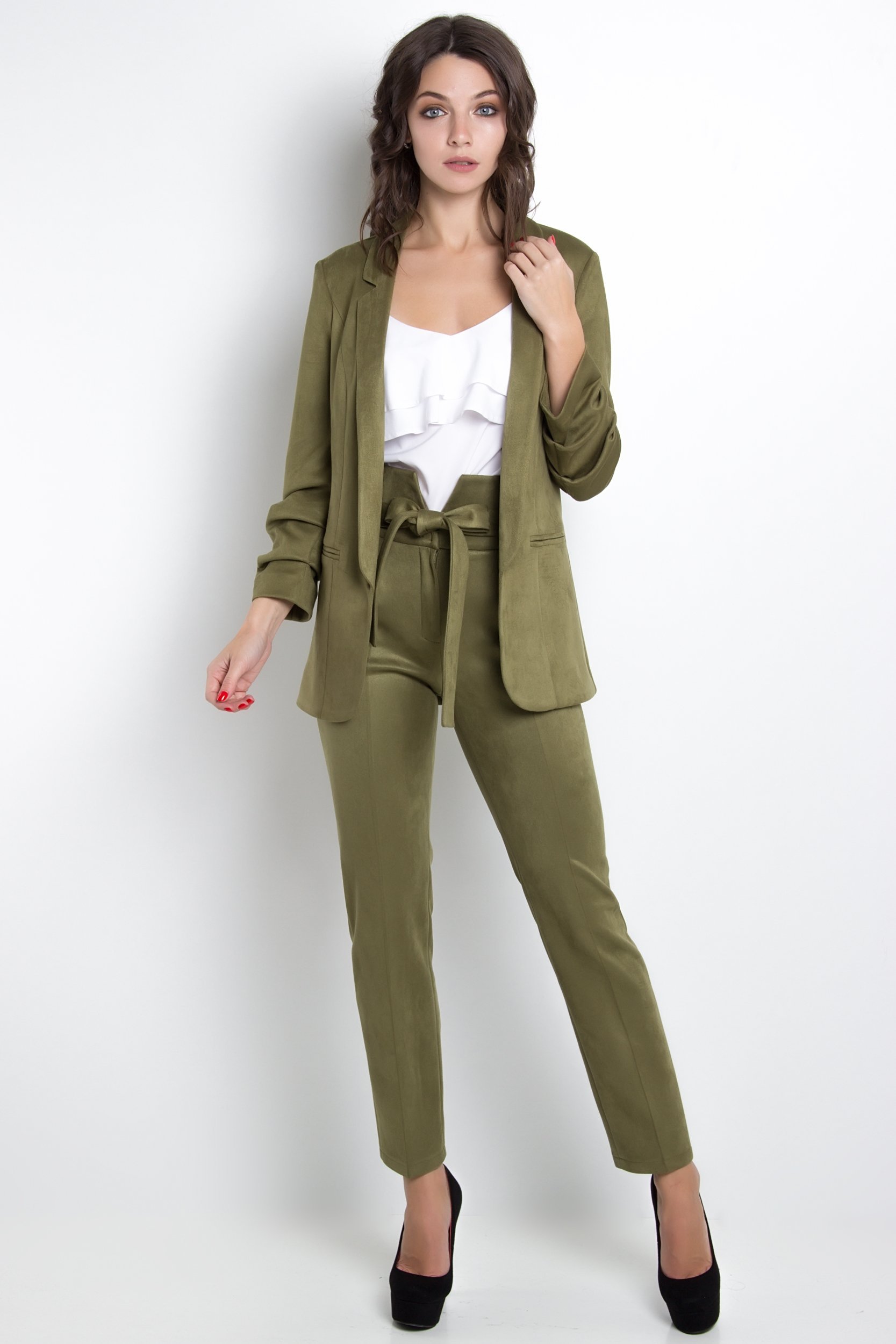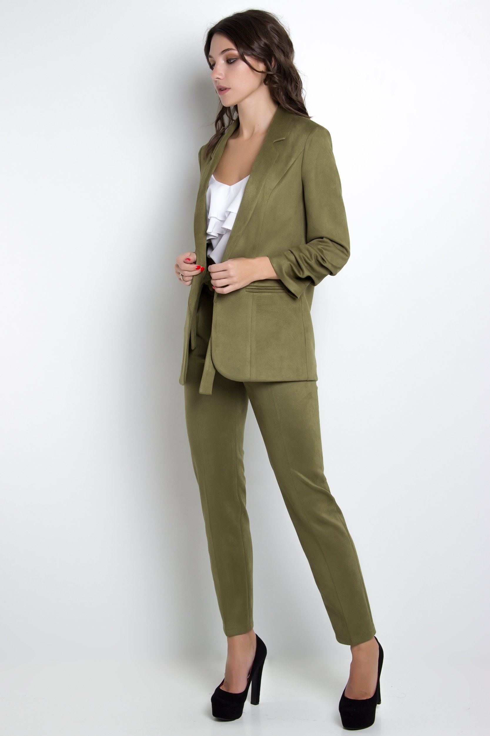 Оливковый костюм женский с рубашкой
