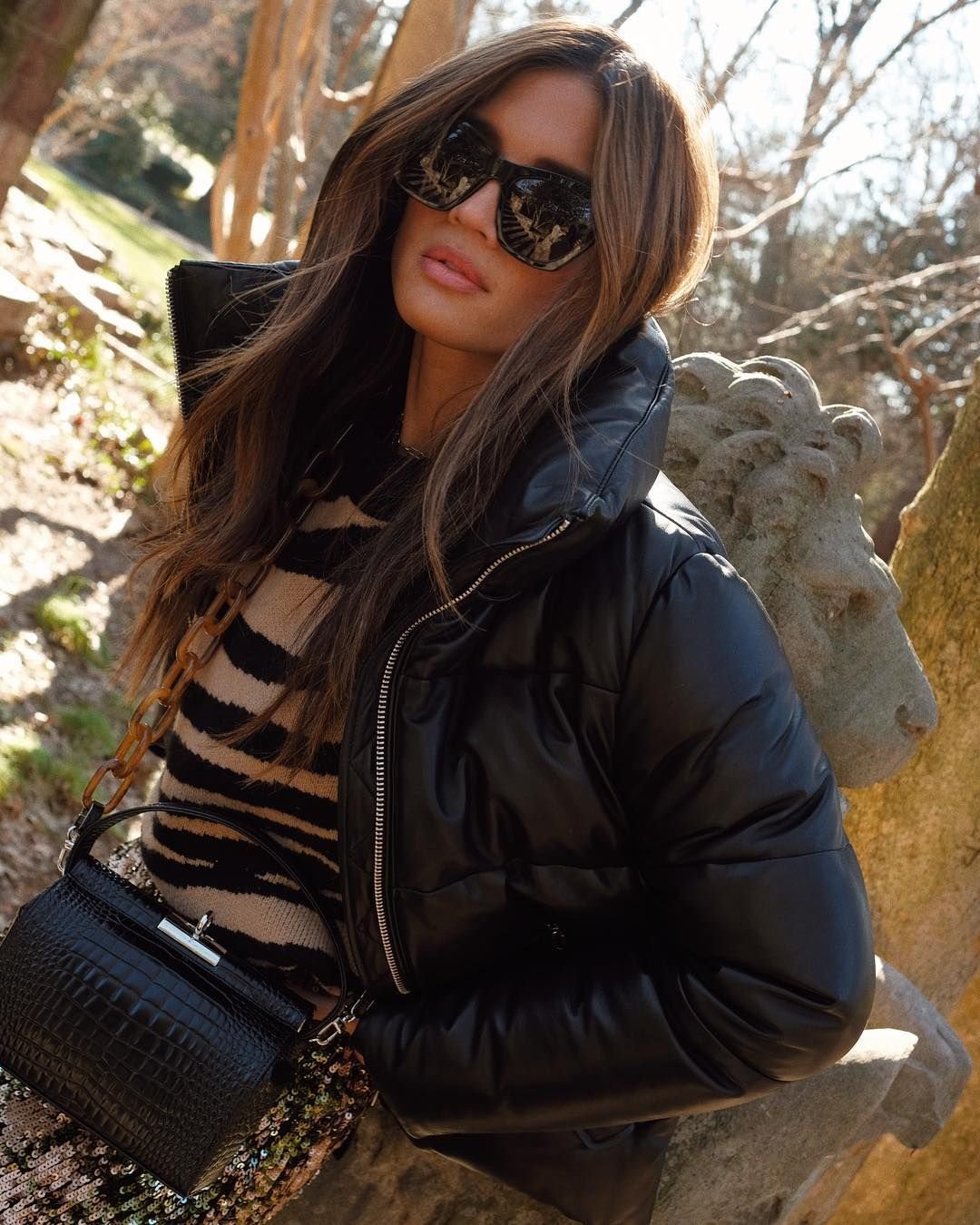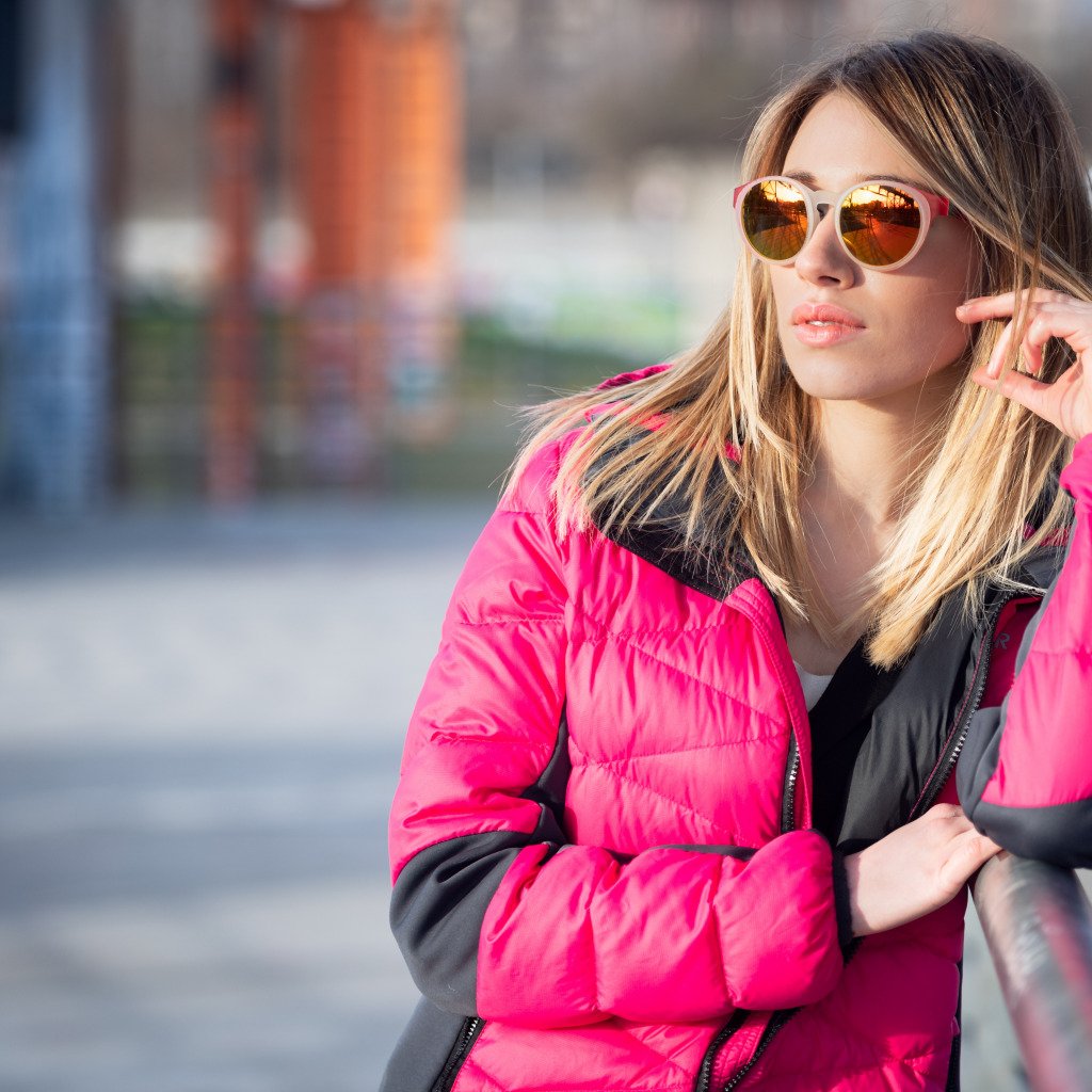 Пуховик с очками на капюшоне женский