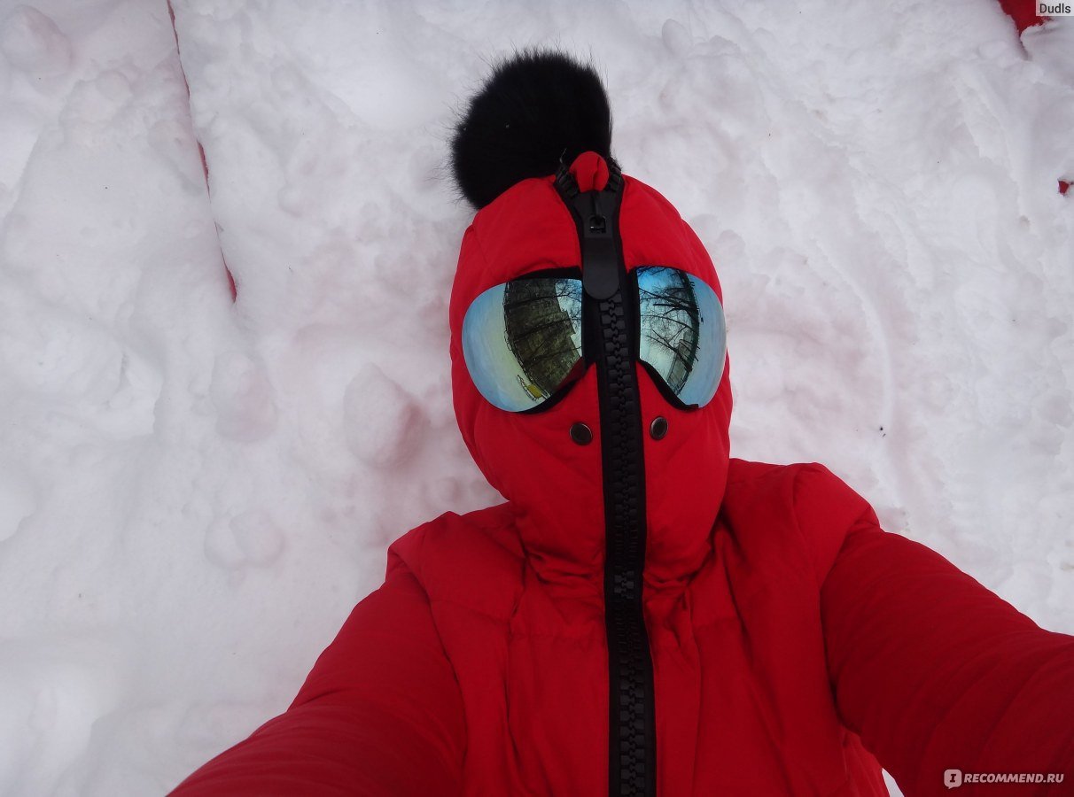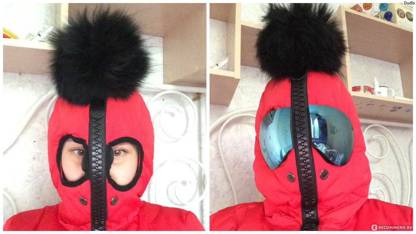 Куртка пуховик с очками на капюшоне