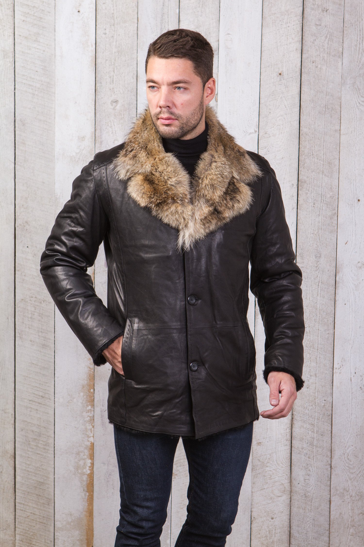 Мужская дубленка с мехом волка