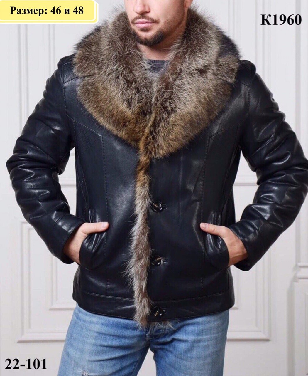 Кожаная куртка с волчьим мехом мужская