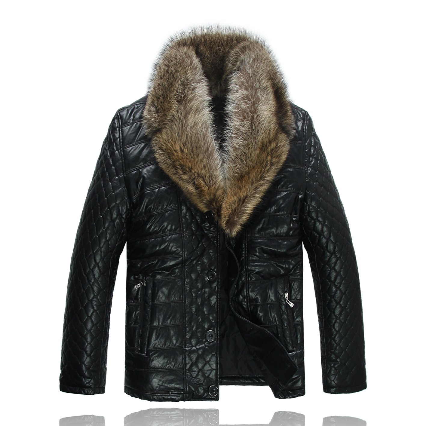 Мужская куртка кожаная с мехом енота Kelaier Classic Fashion