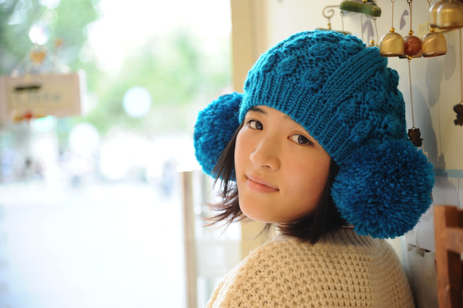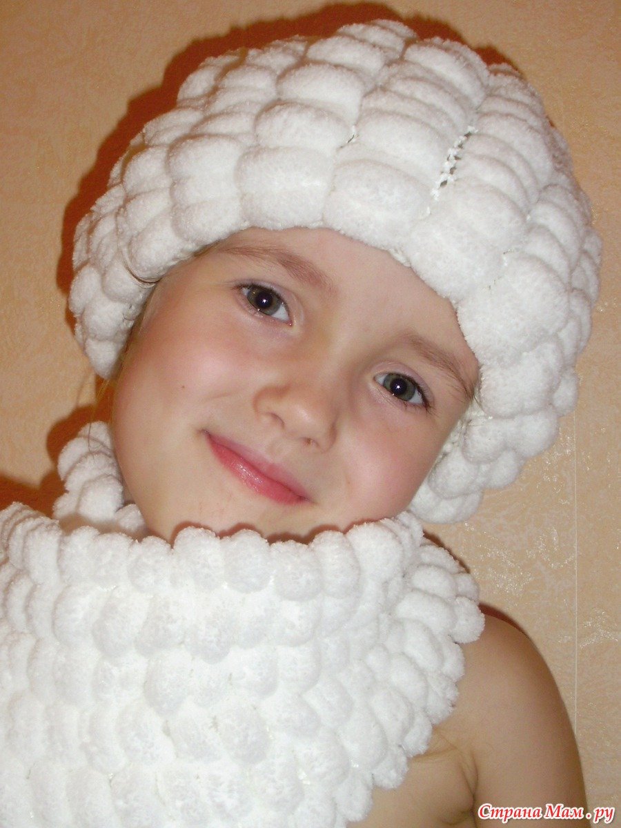 Шапочка из помпонной пряжи