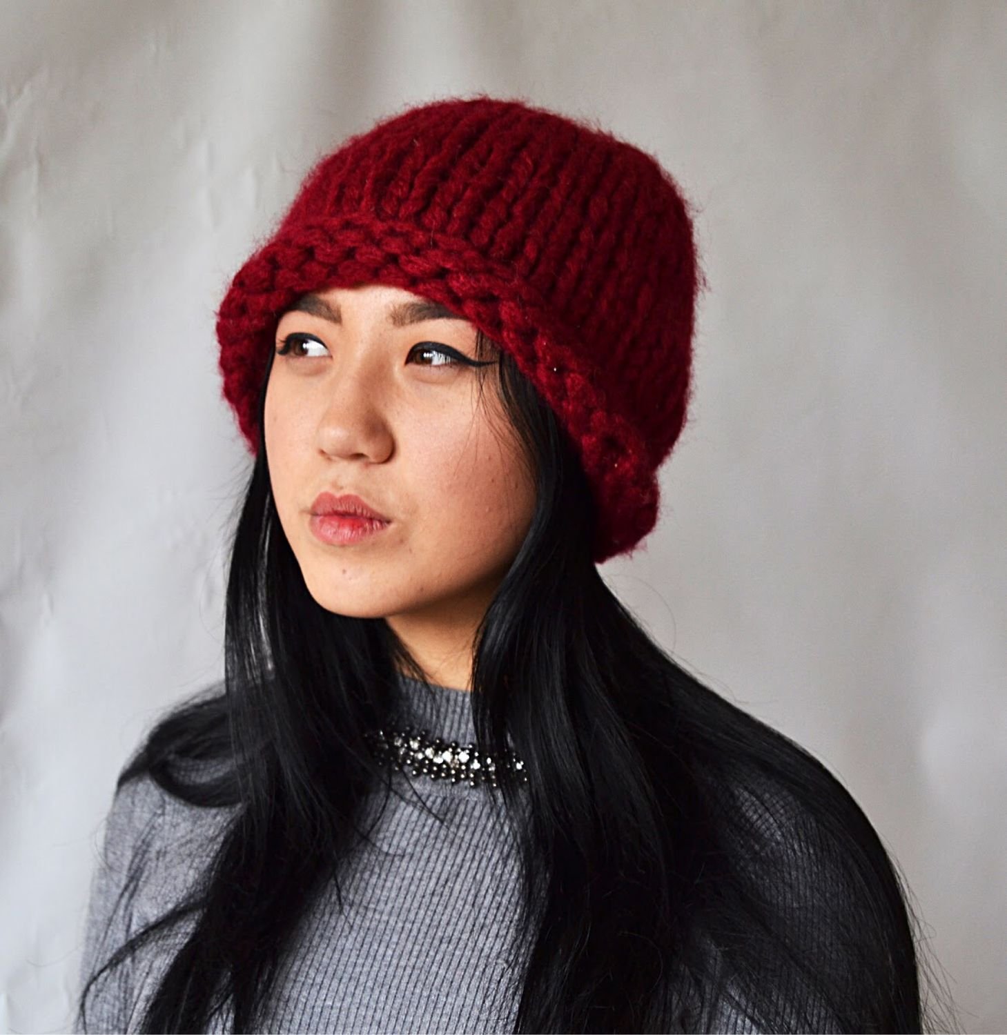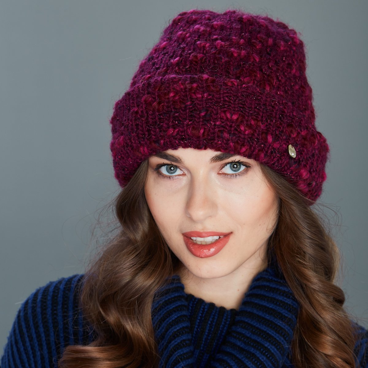 Шапочки из бордовой пряжи