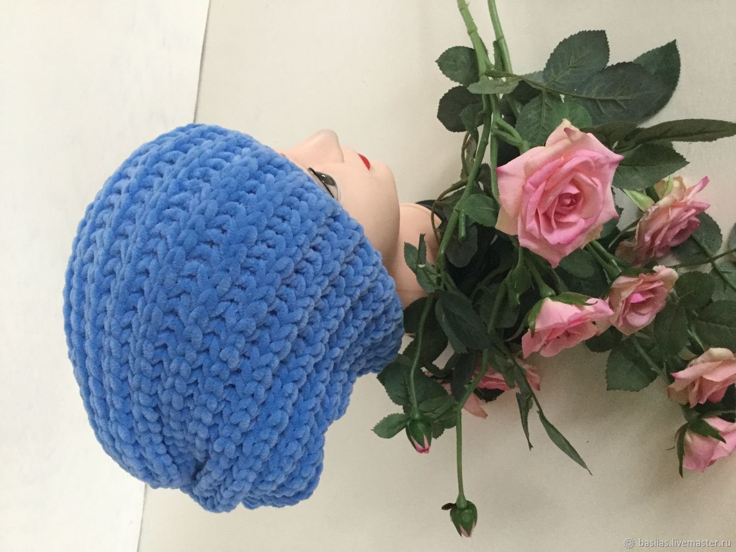 Велюровая шапка вязаная