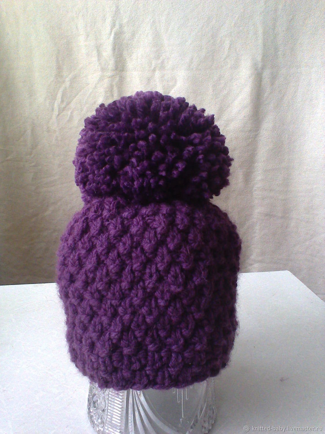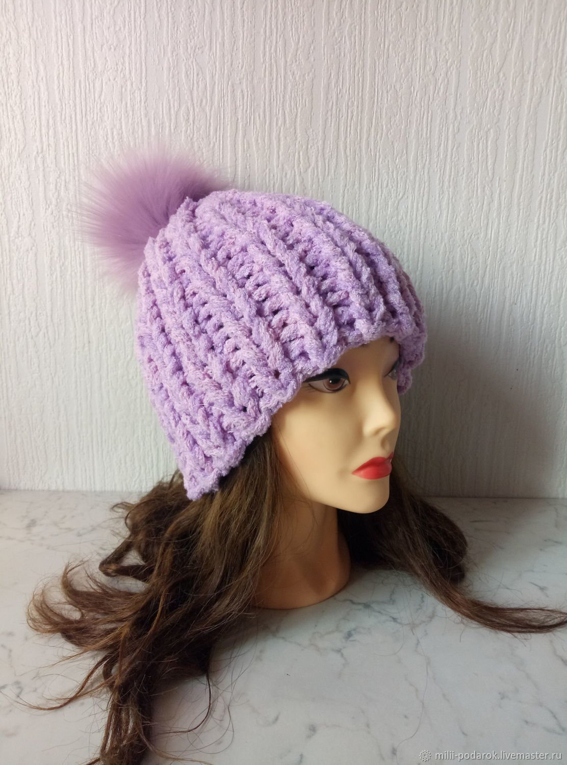 Сиреневая вязаная шапка