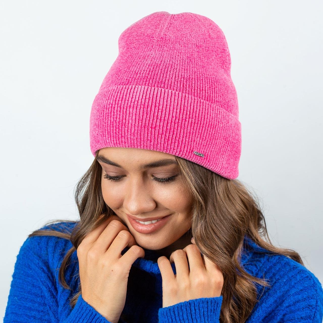 Женская шапка из велюровой пряжи