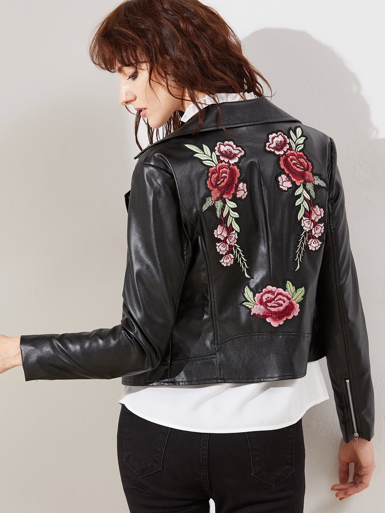 Вышивка на розовой куртке кожаной