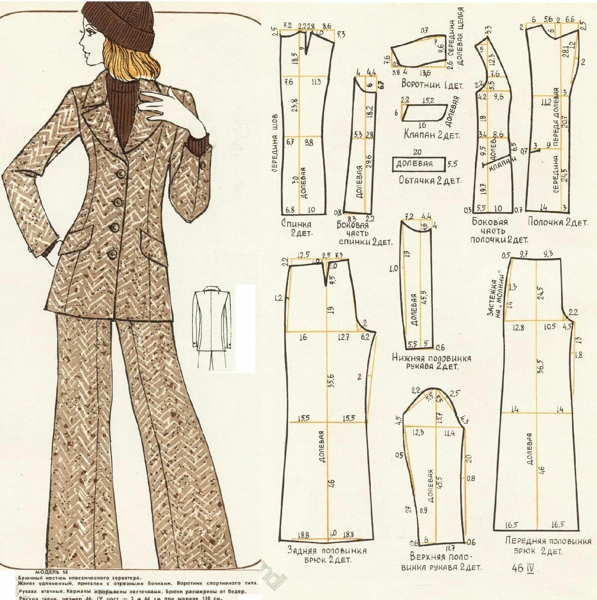 Выкройка женского брючного костюма 46 размер