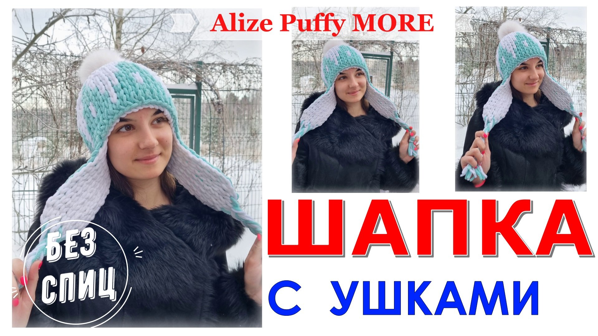 Шапка с ушками из пряжи ализе пуффи [46 фото]