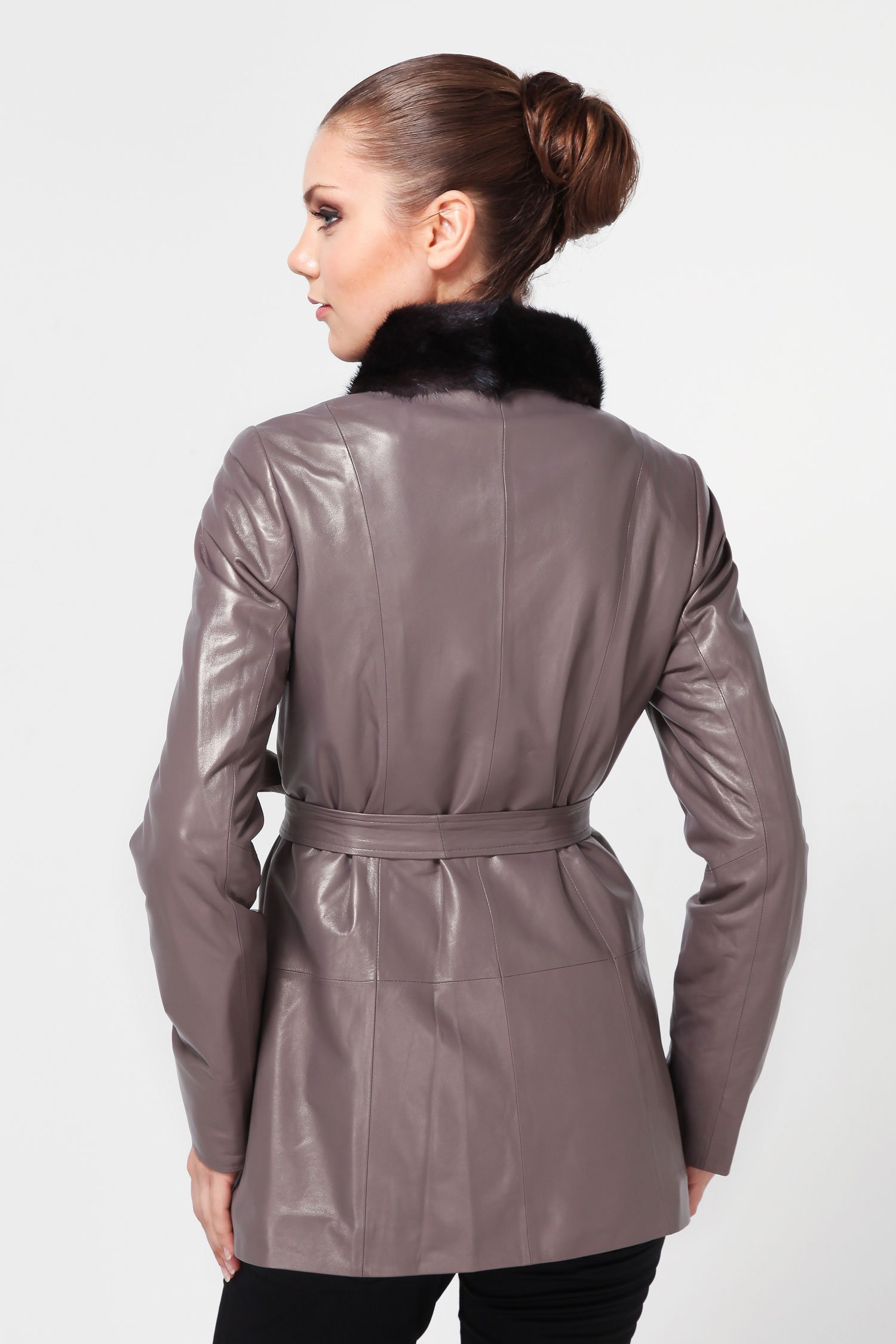 Куртка бордовая кожа на пуговицах воротник норка 7aahian