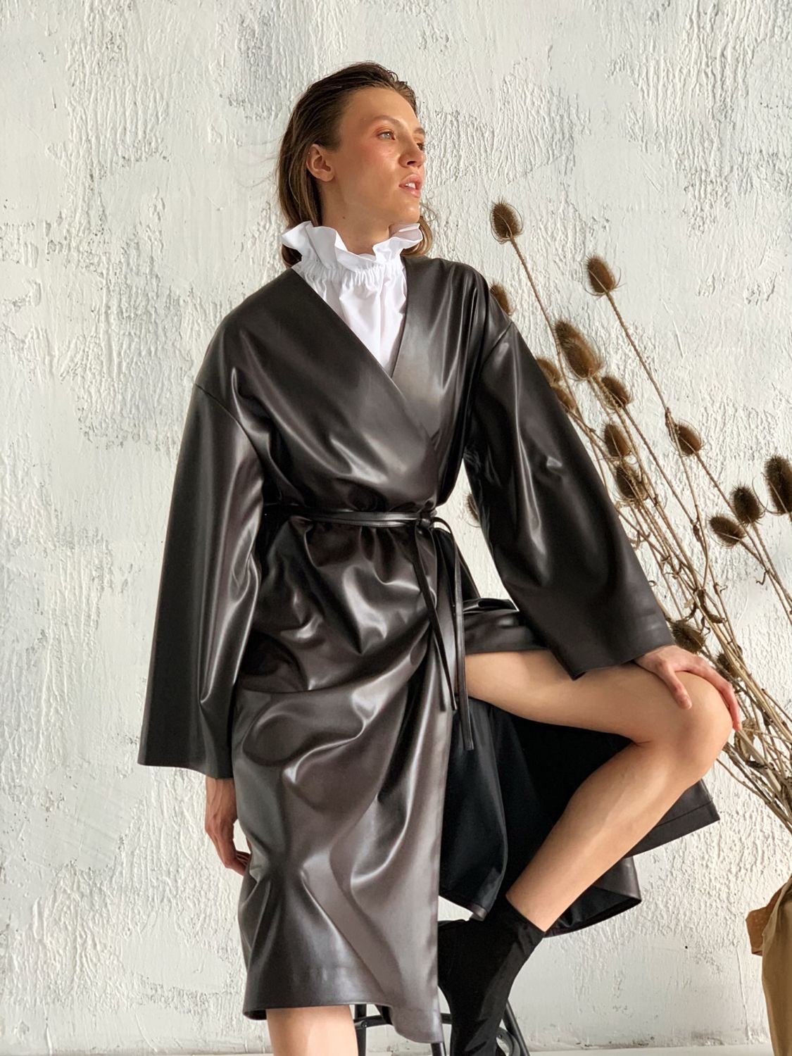 Кожаный плащ женский