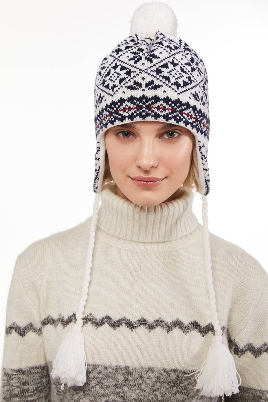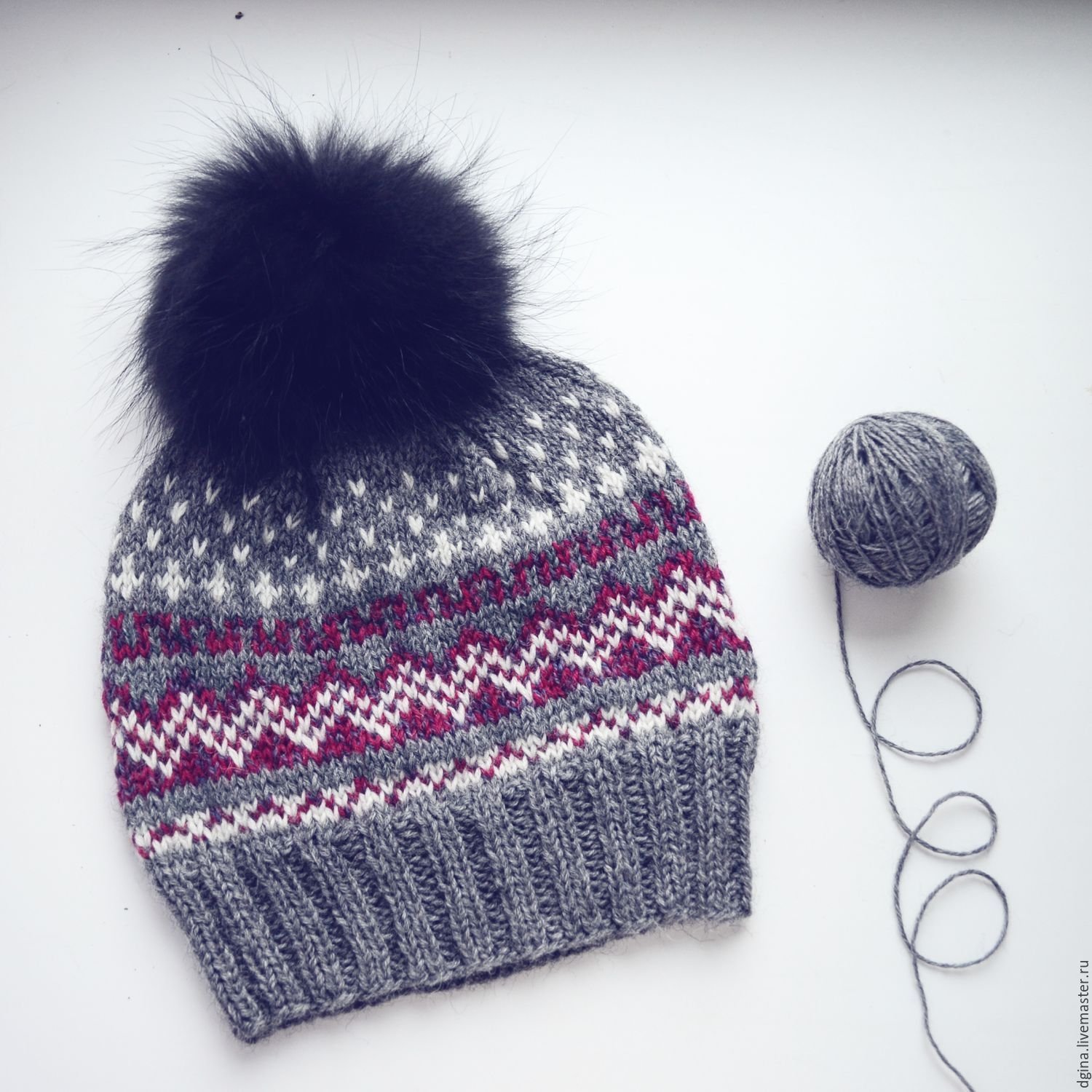 Шапка жаккард с помпоном