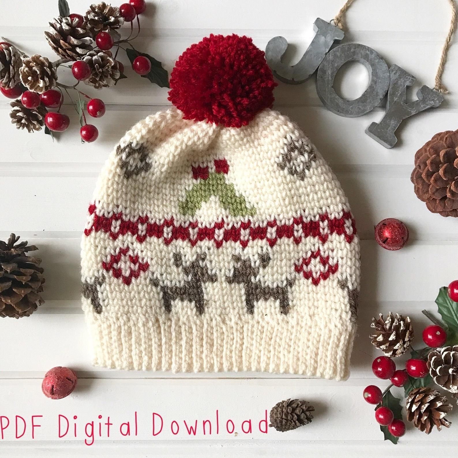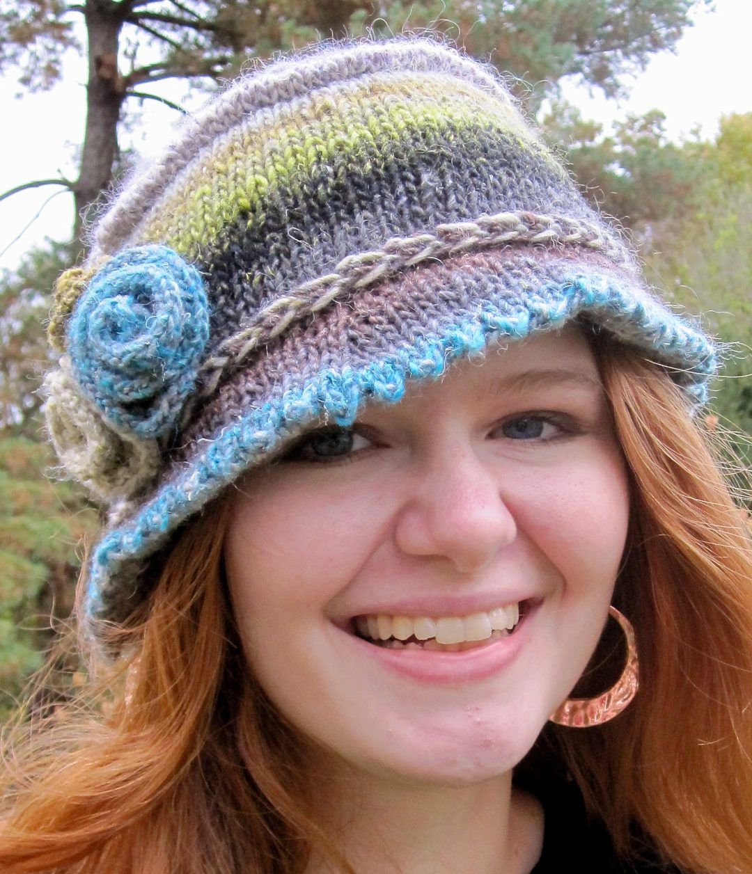 Вязаная шапка с цветочным орнаментом