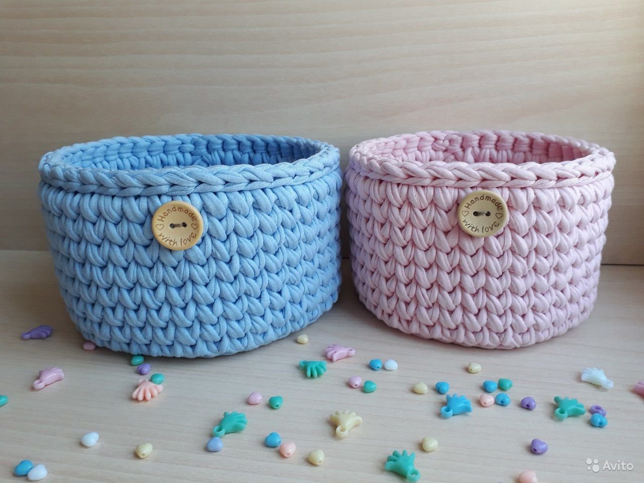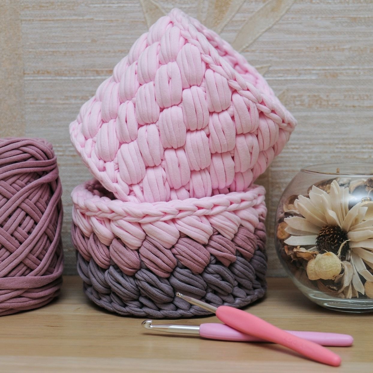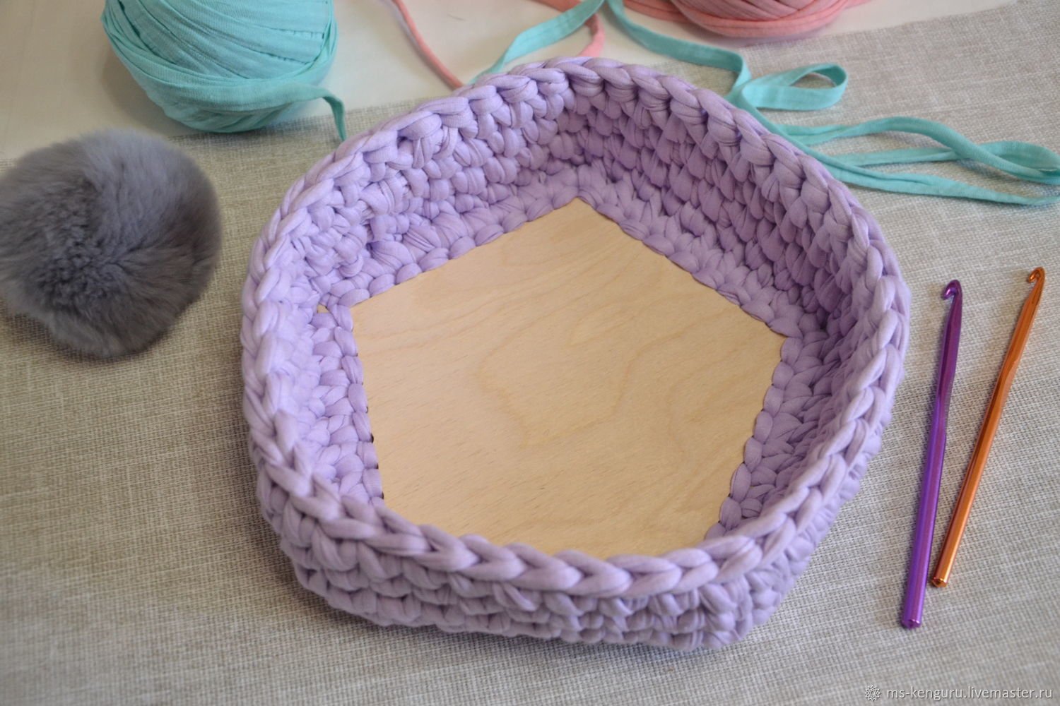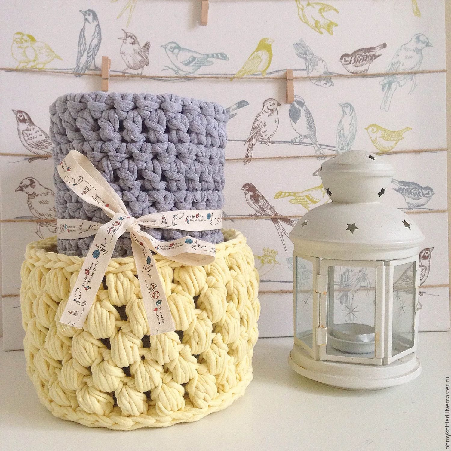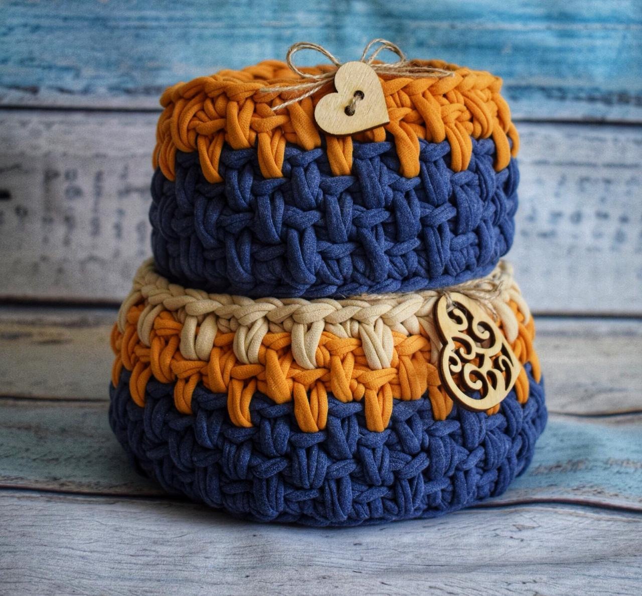 Корзинки из трикотажной пряжи с деревянным дном и крышкой