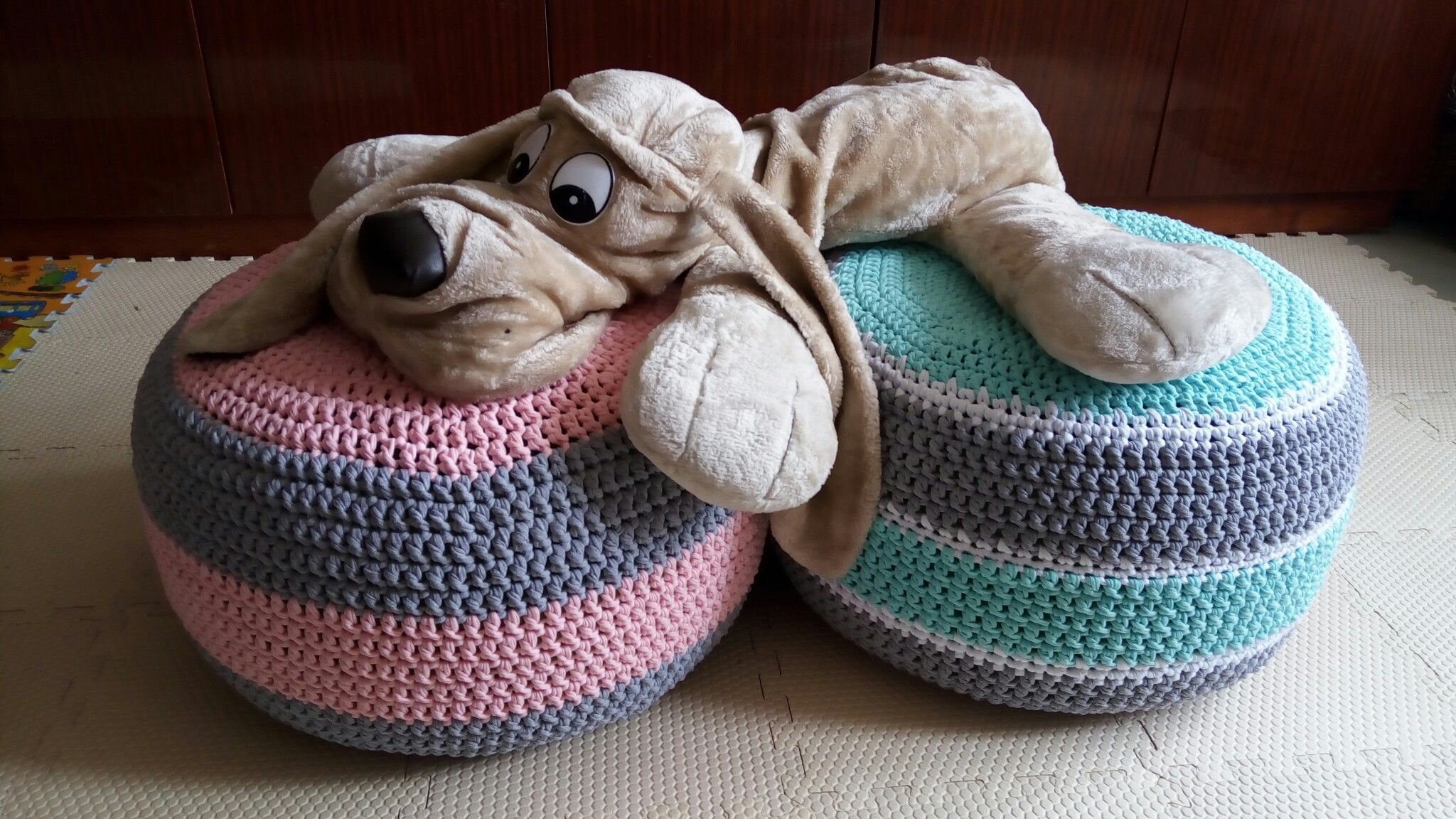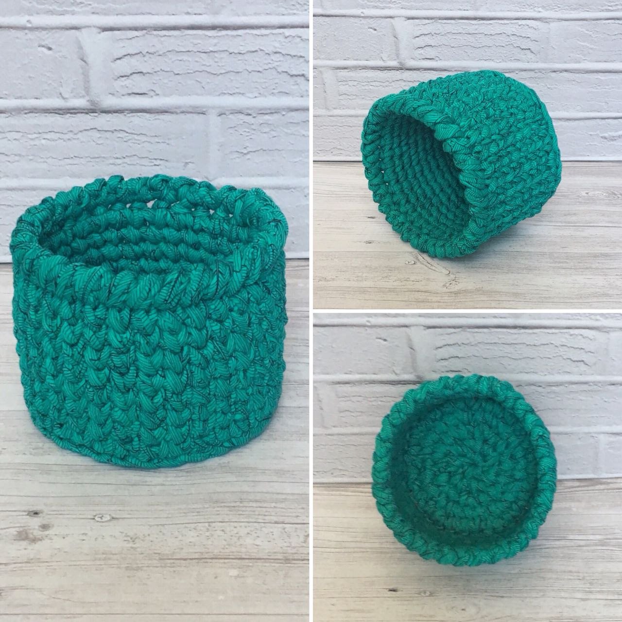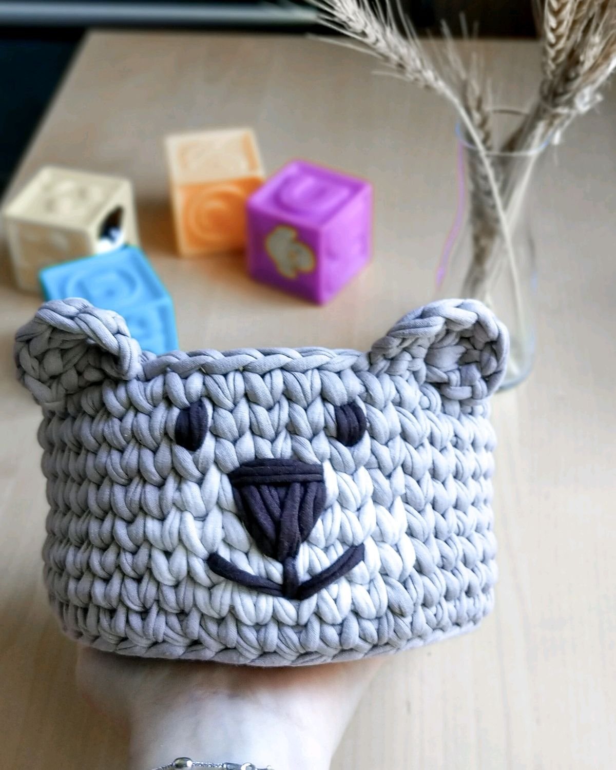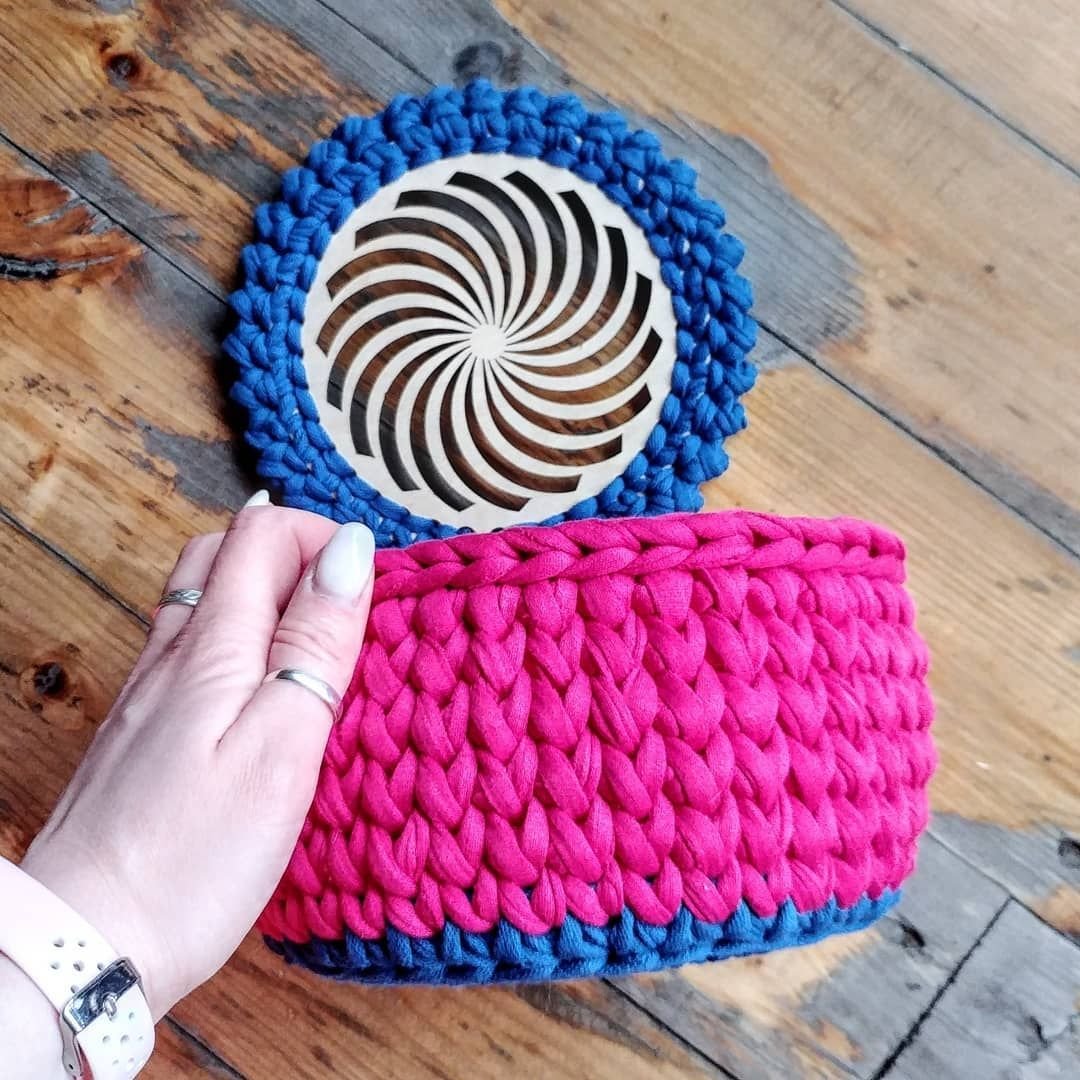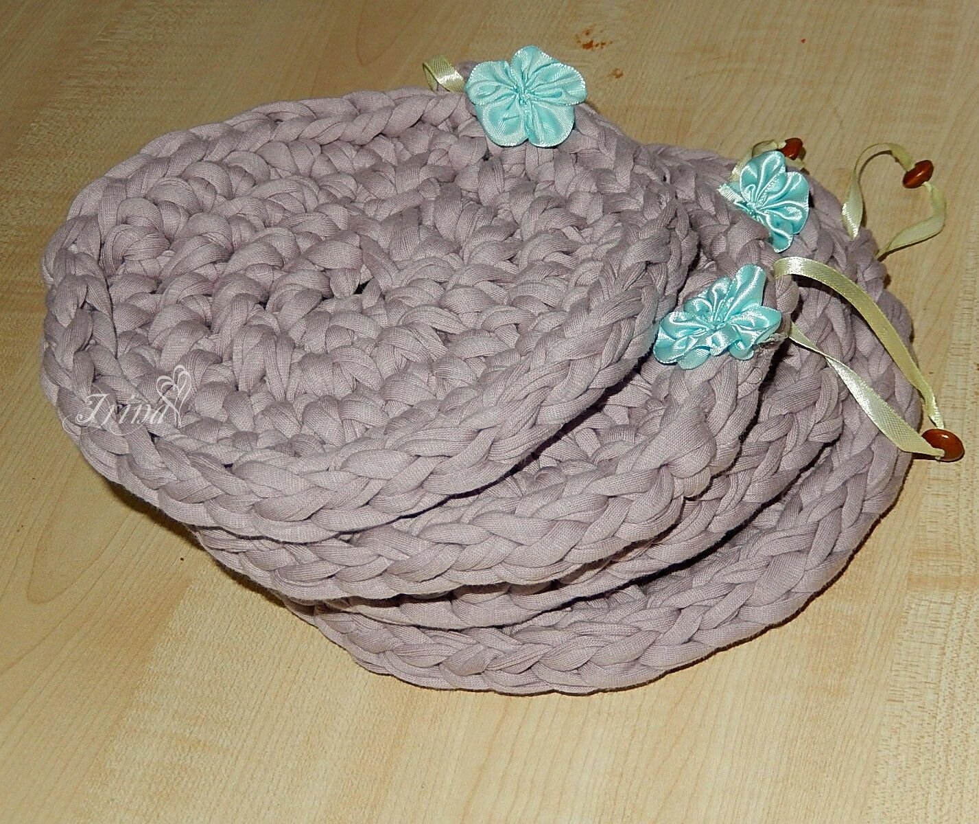 Корзинки из трикотажной пряжи с деревянным дном и крышкой