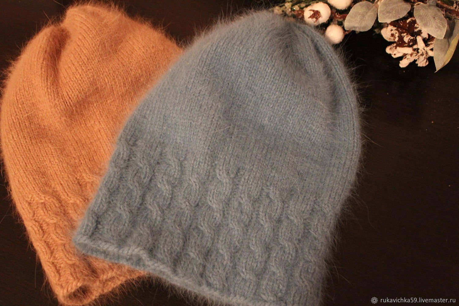 Шапка из ангоры с косами спицами