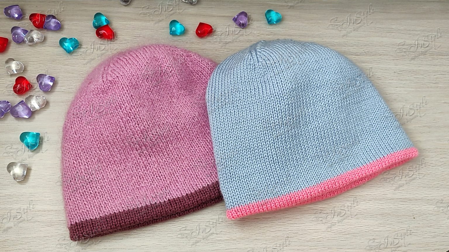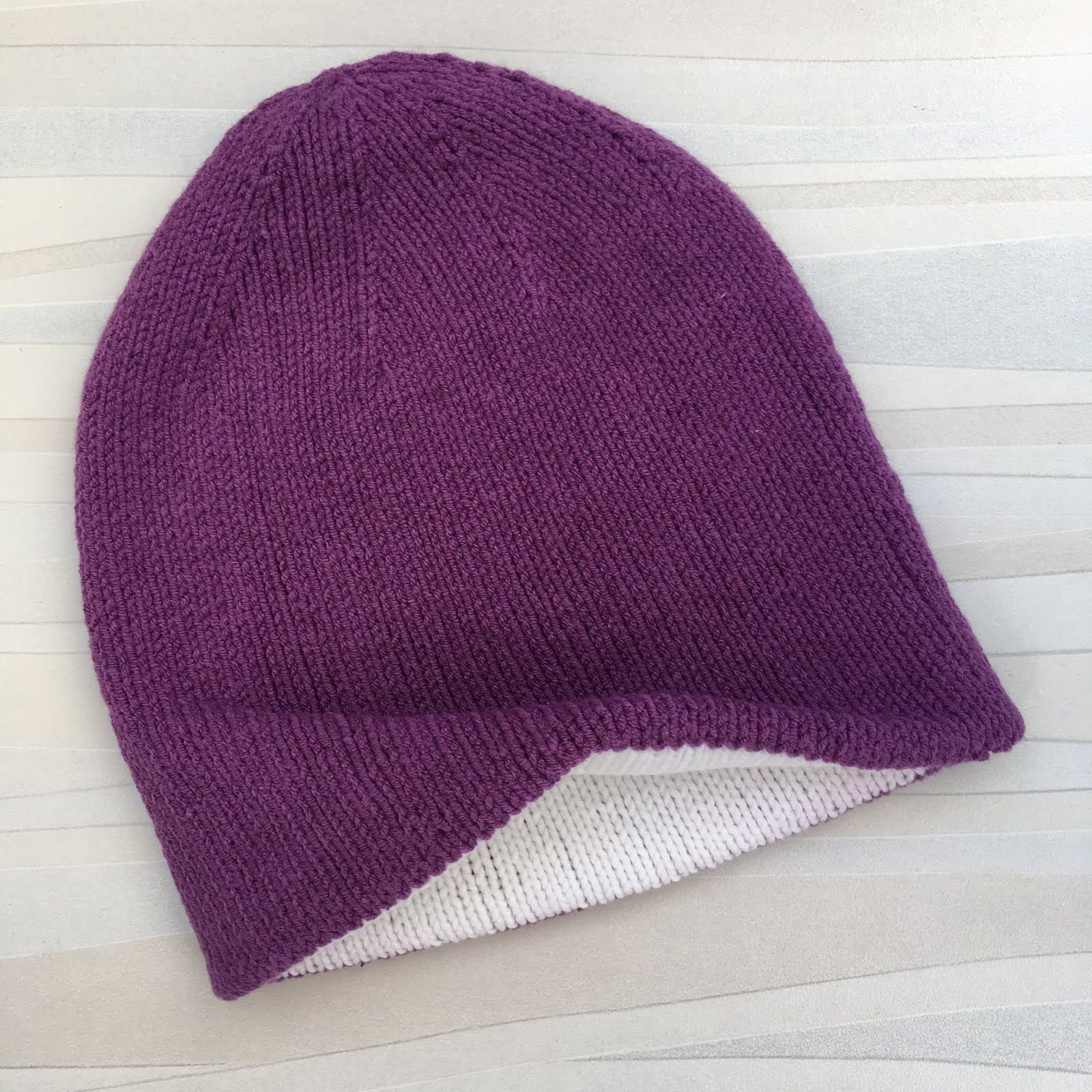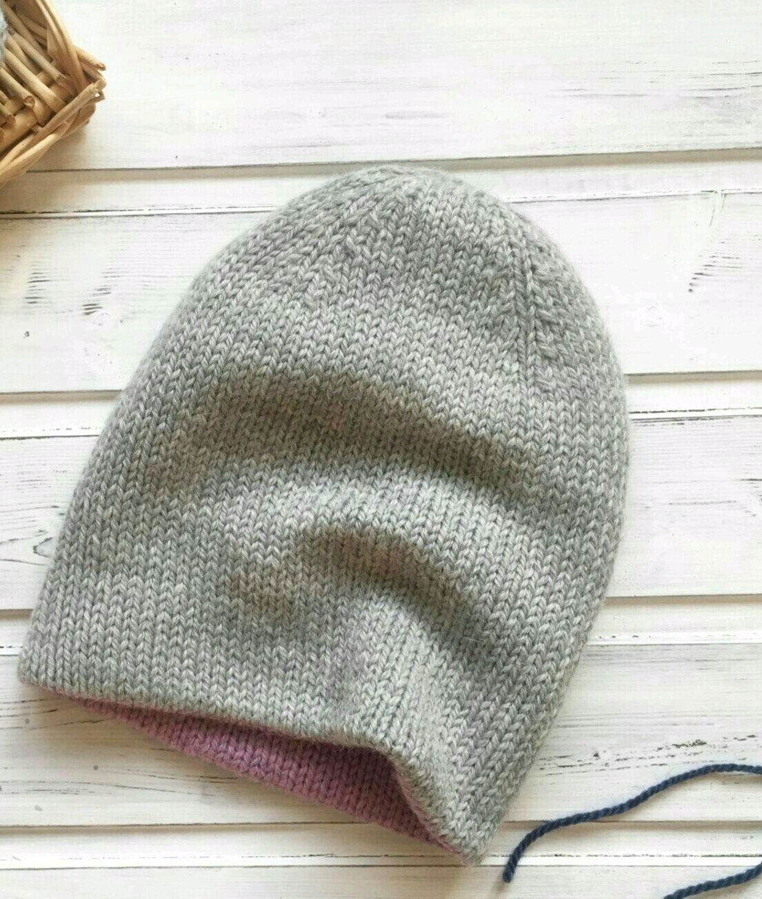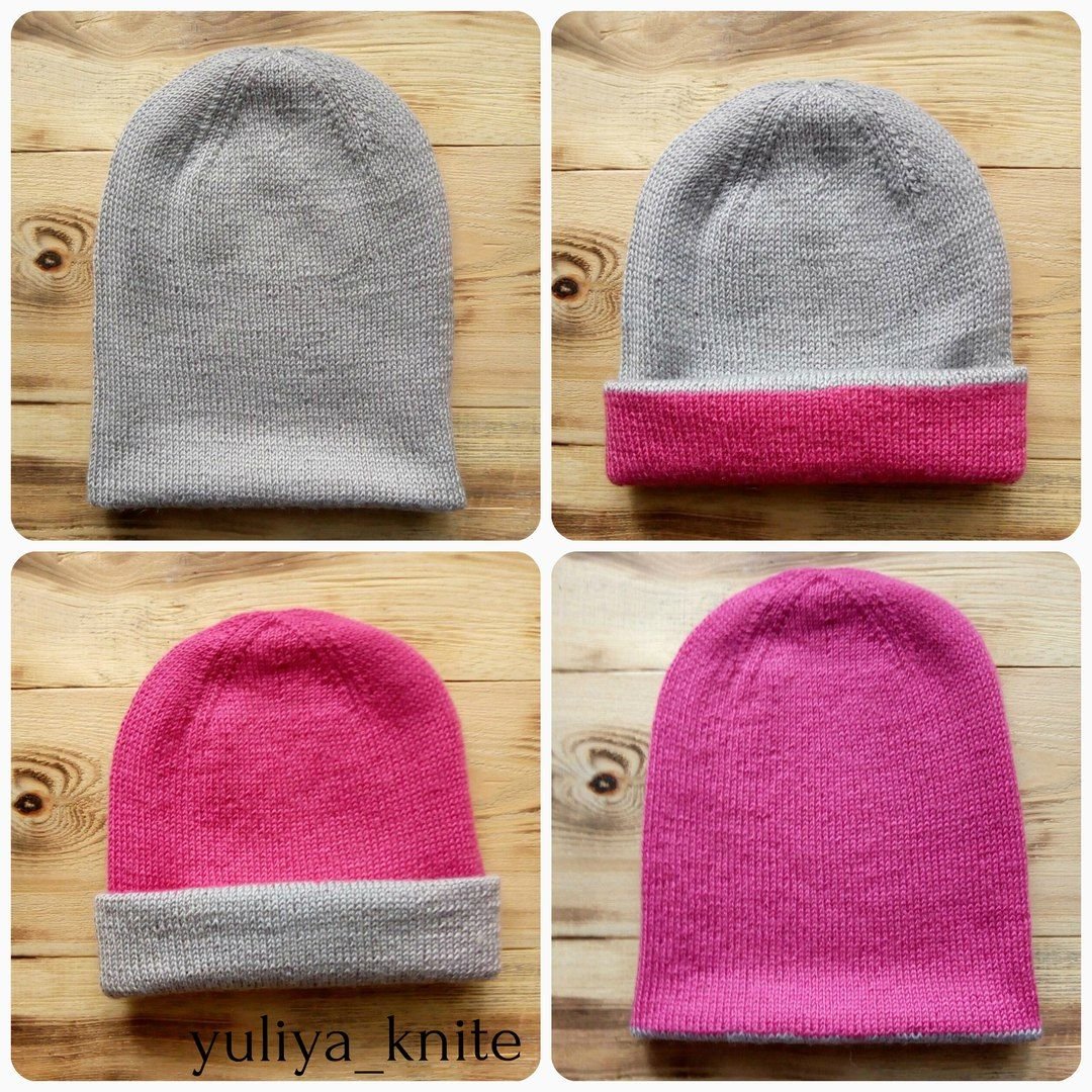 Двойная шапка бини лицевой гладью