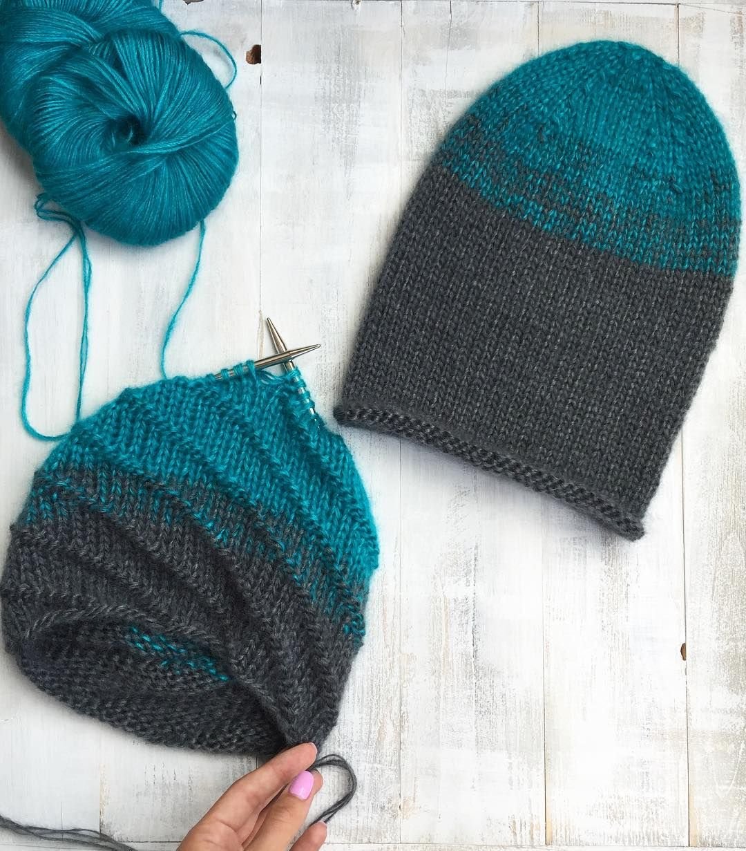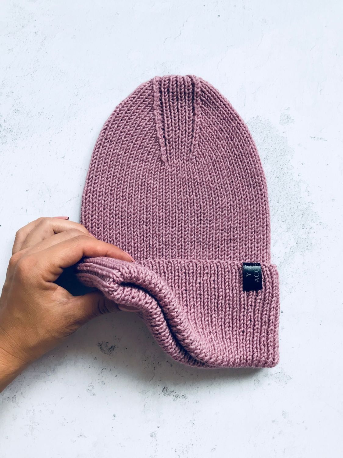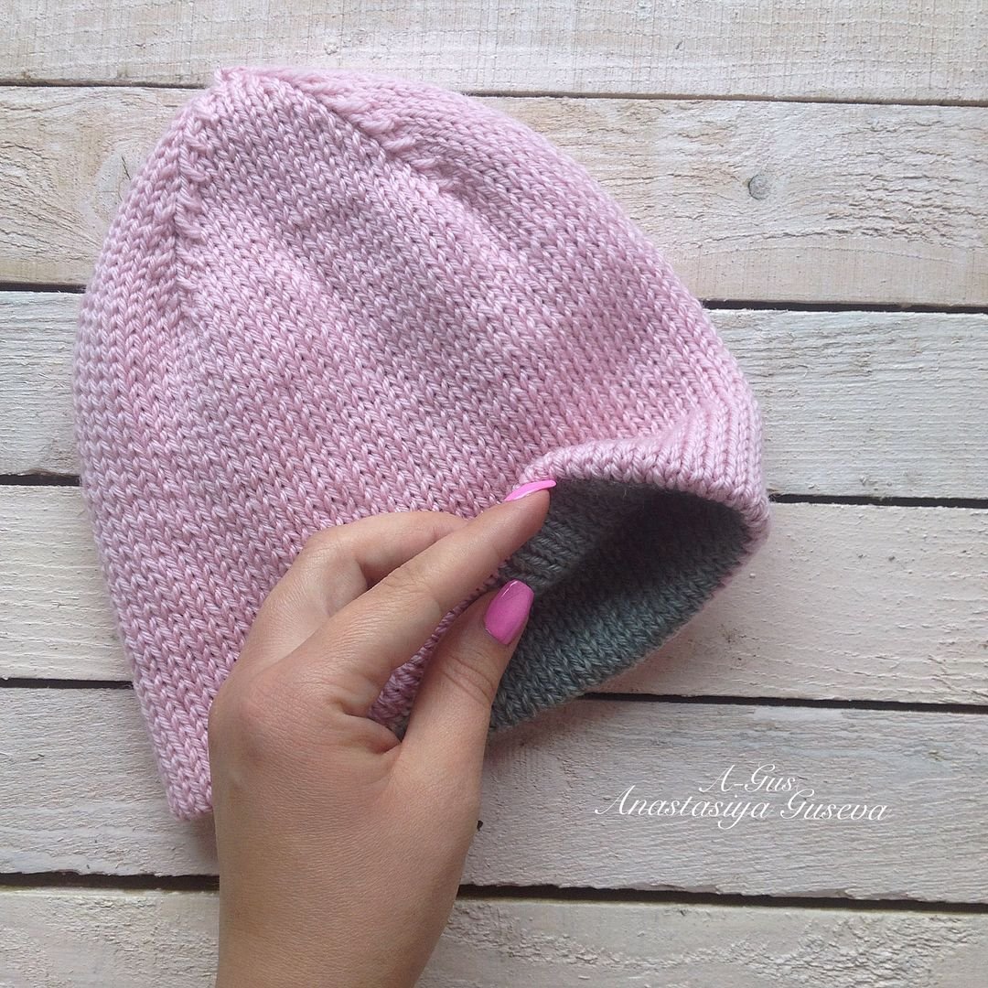 Шапка лицевой гладью на круговых спицах [49 фото]