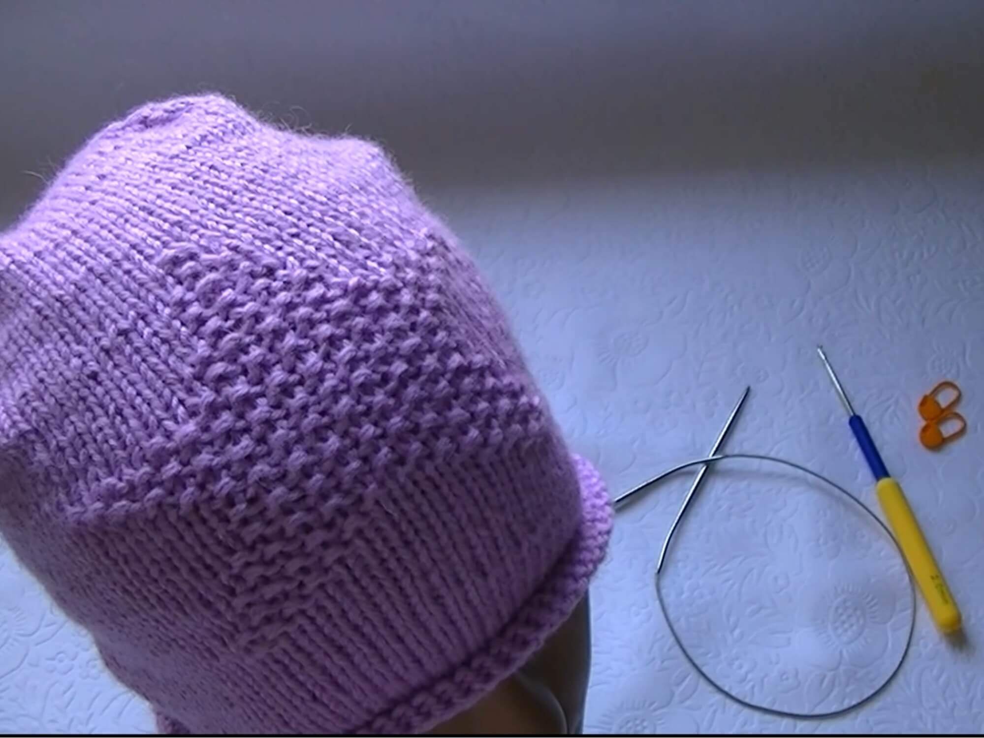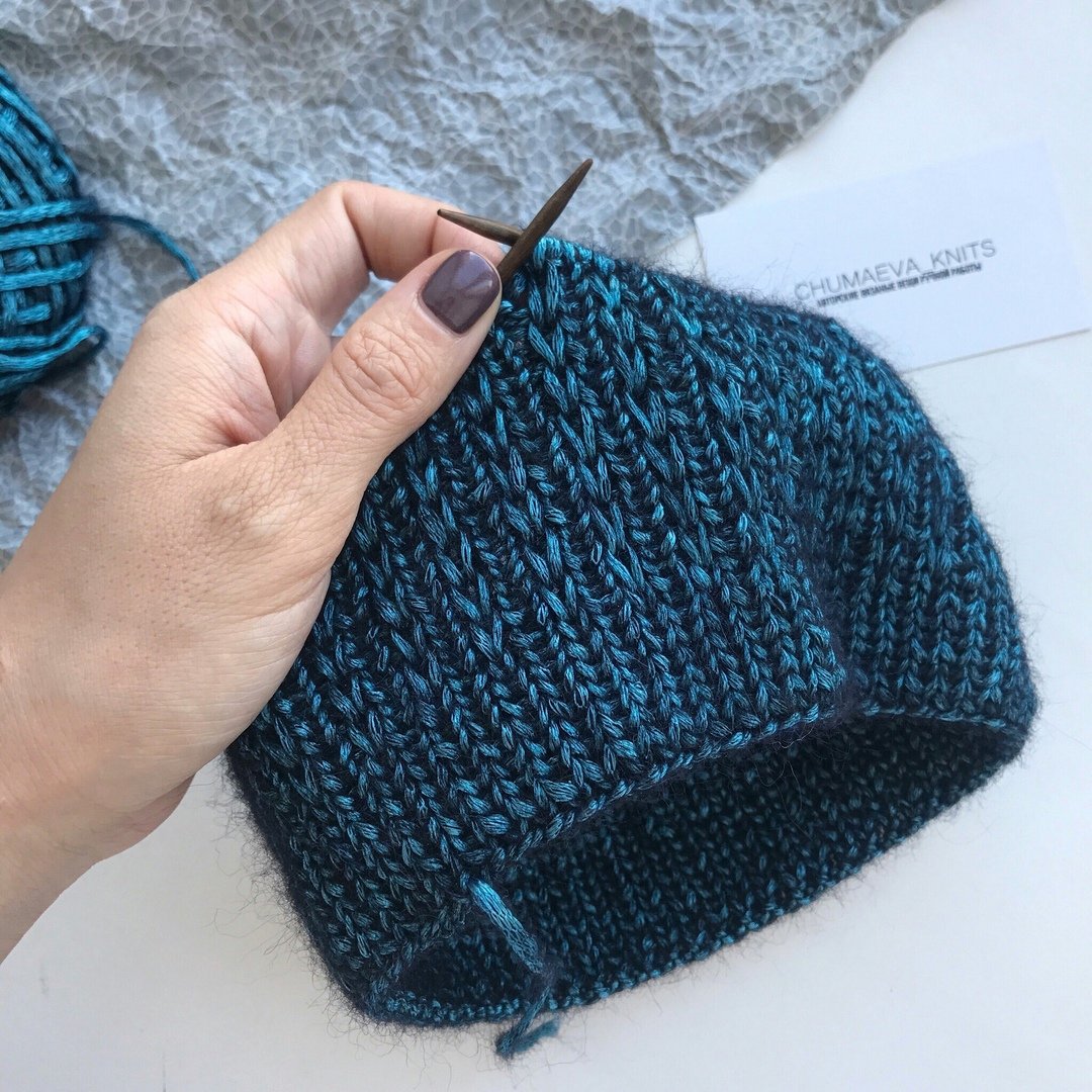 Вязание шапки лицевыми петлями
