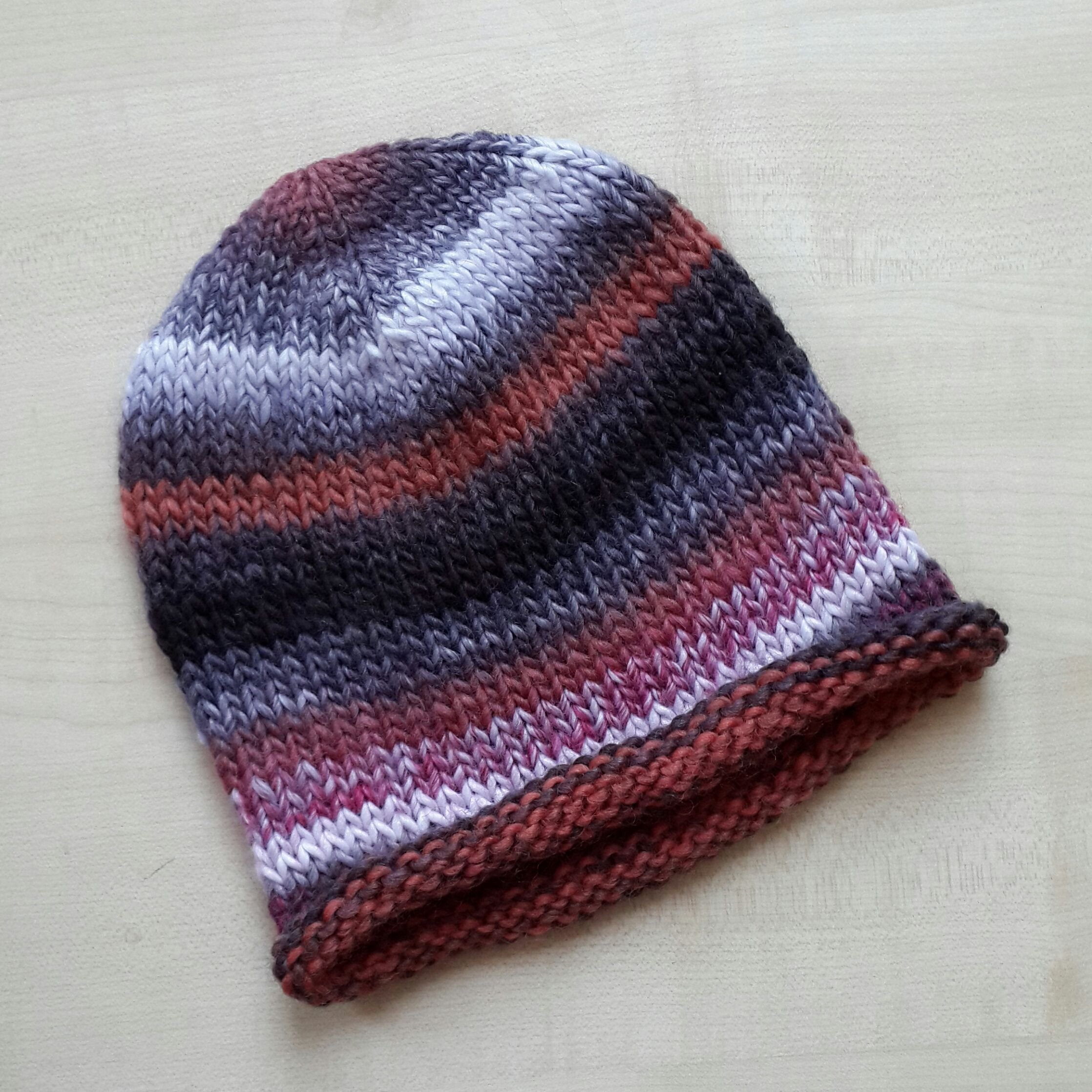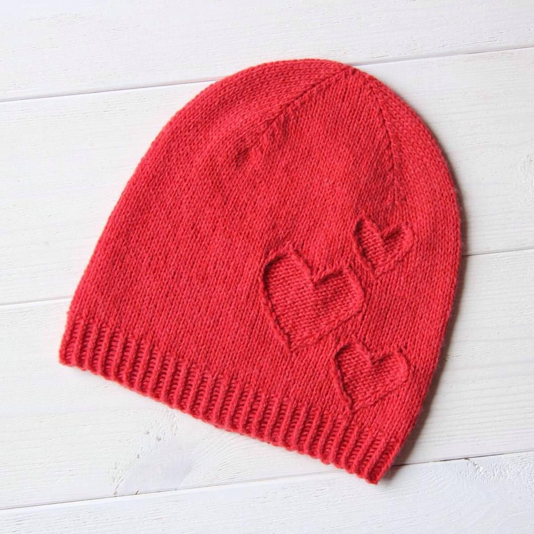 Вязаная шапка лицевой гладью