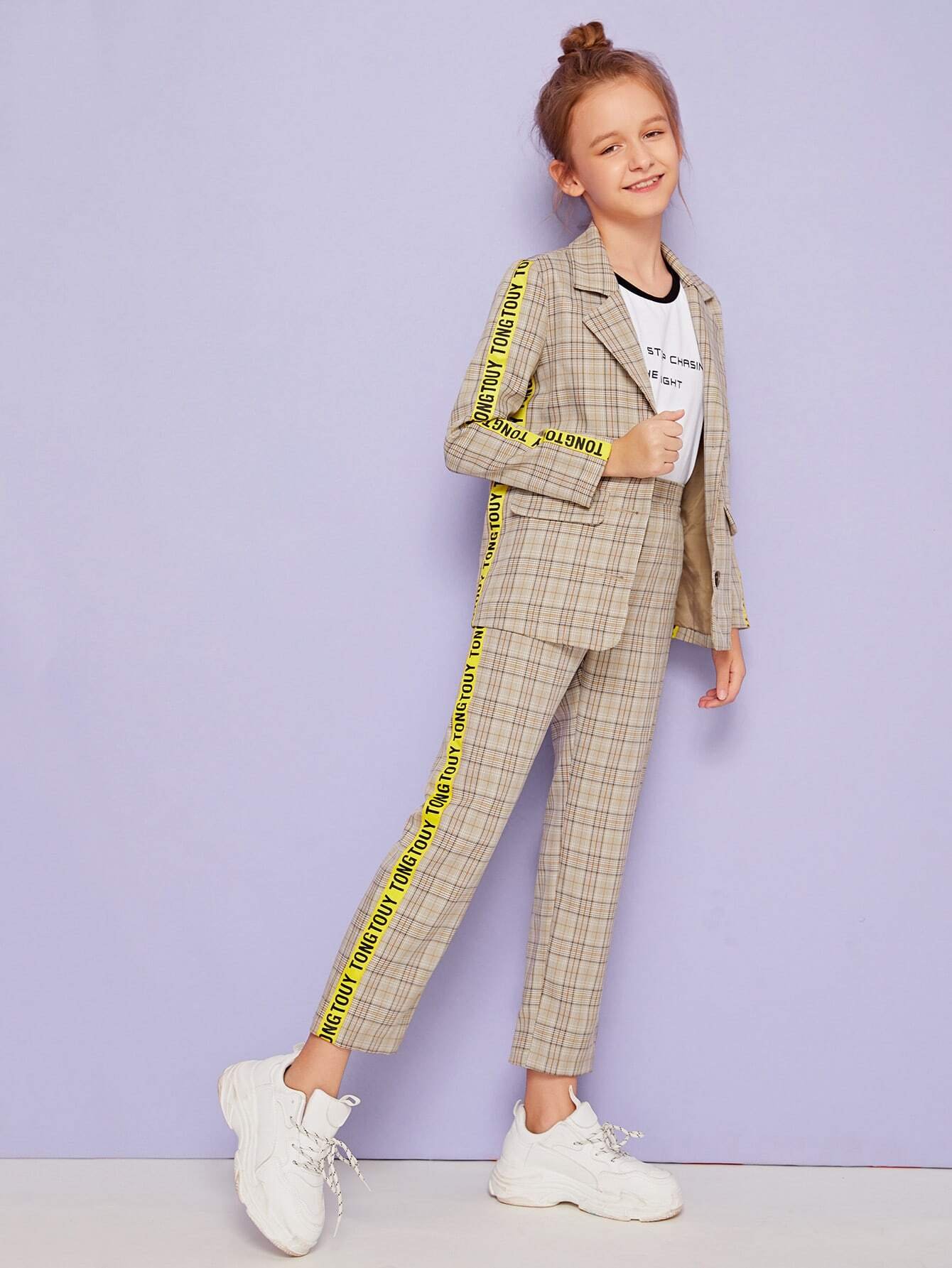 Пиджак в клетку и брюки для девочек