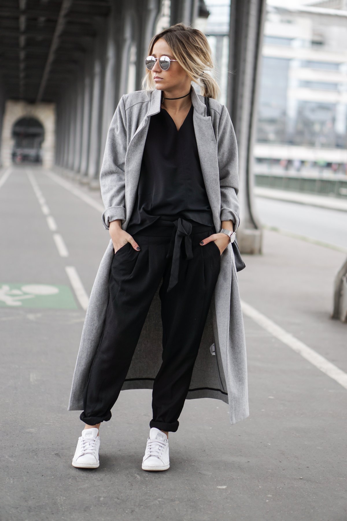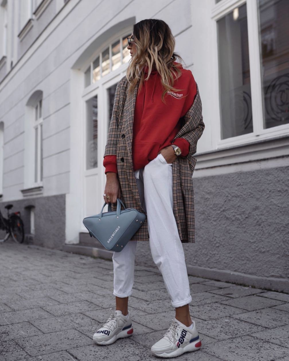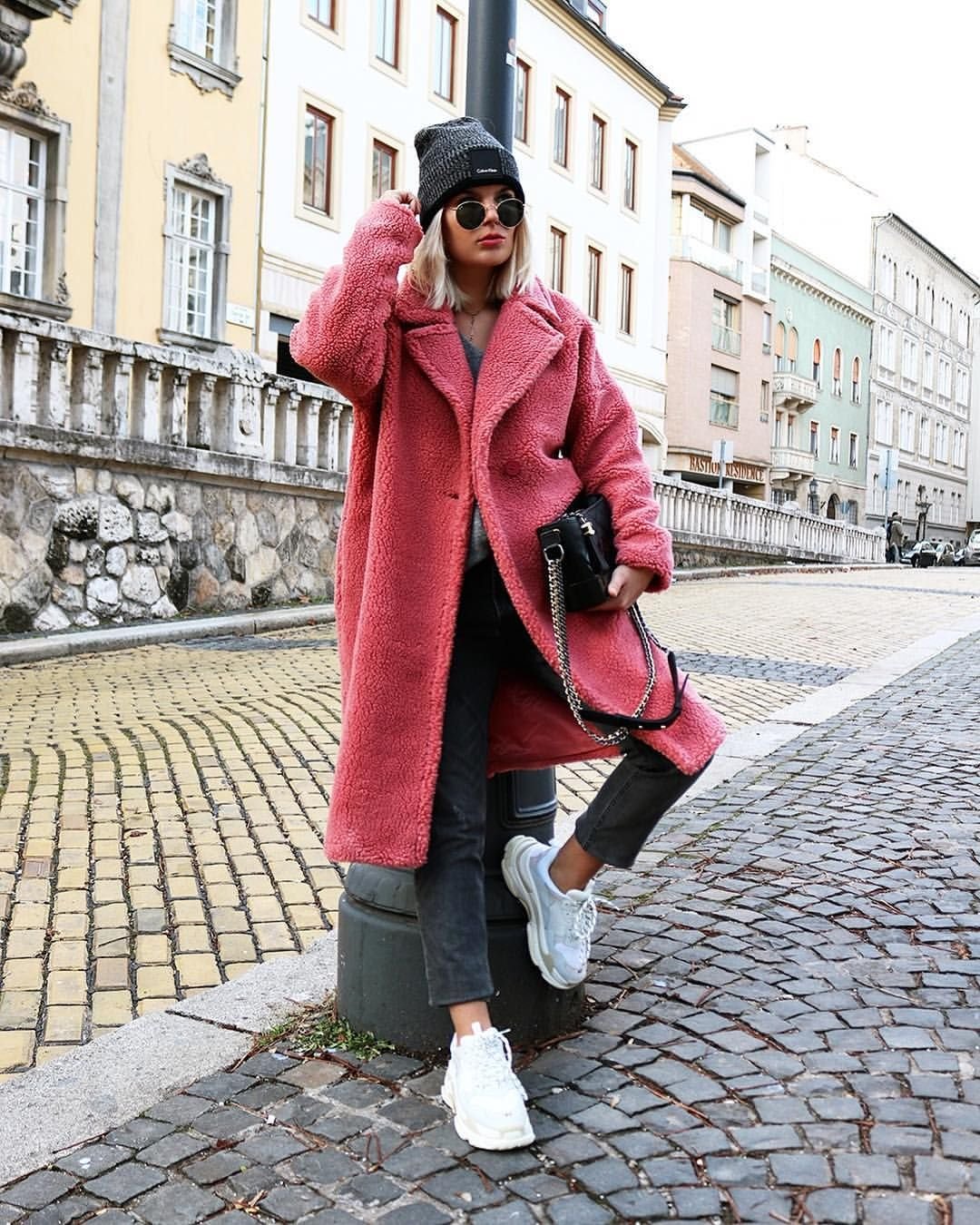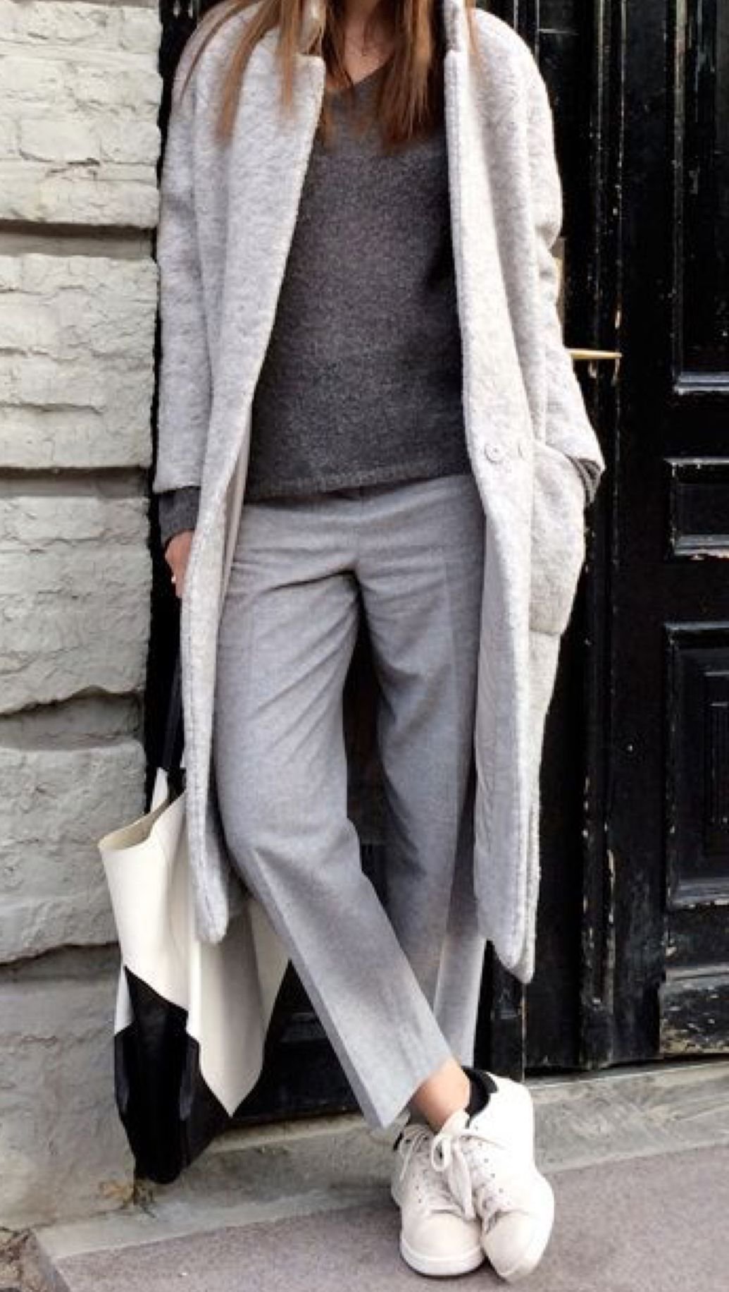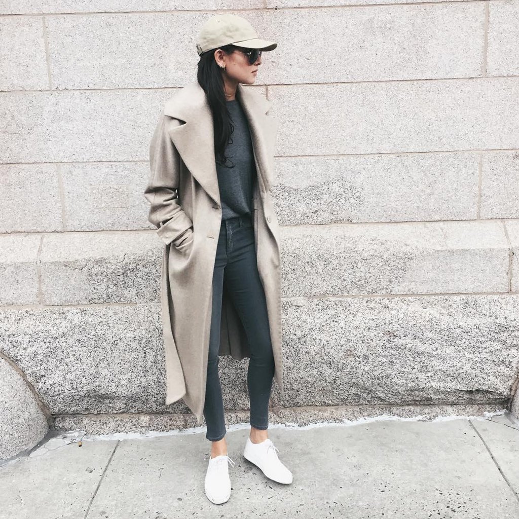 Модное пальто с кроссовками