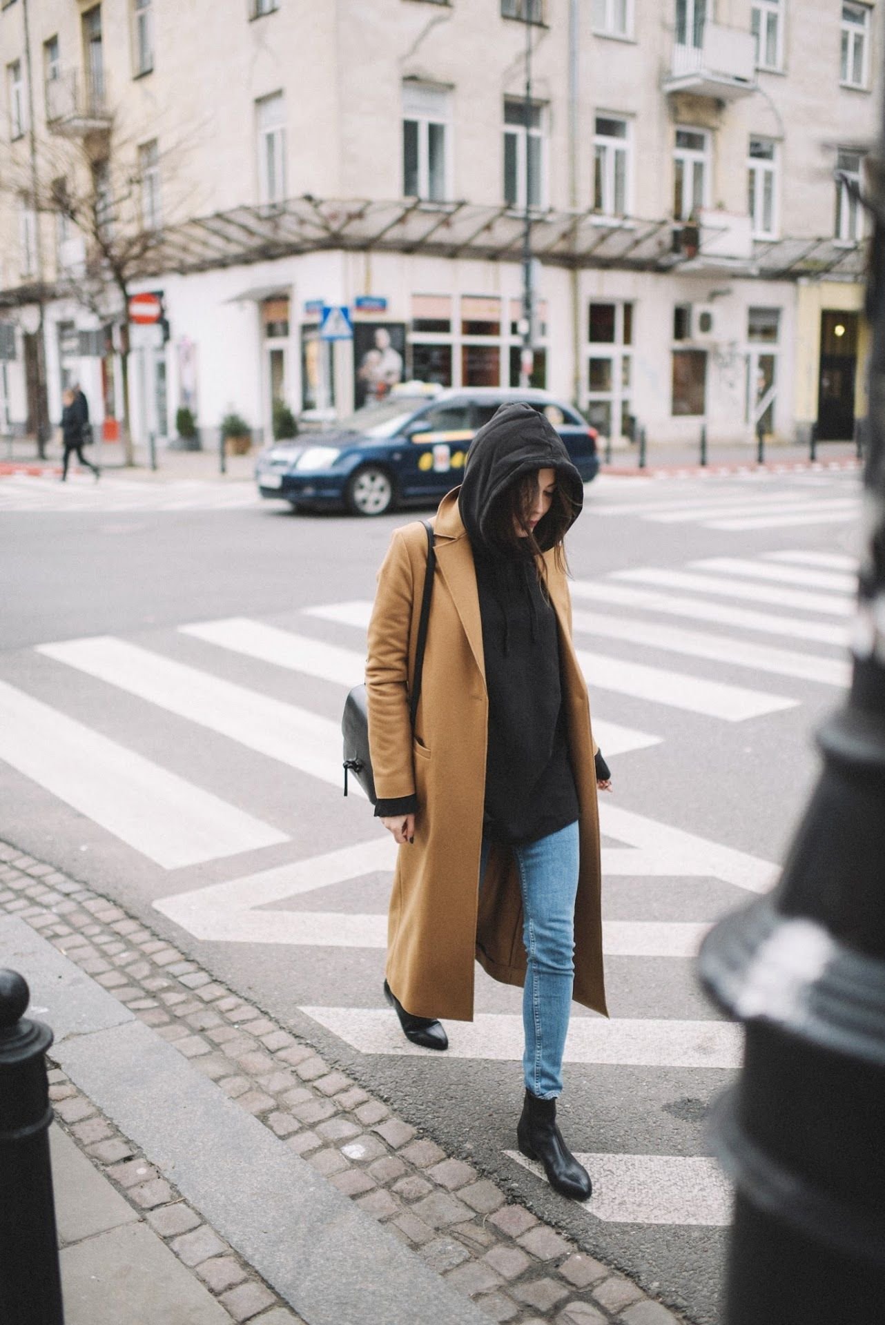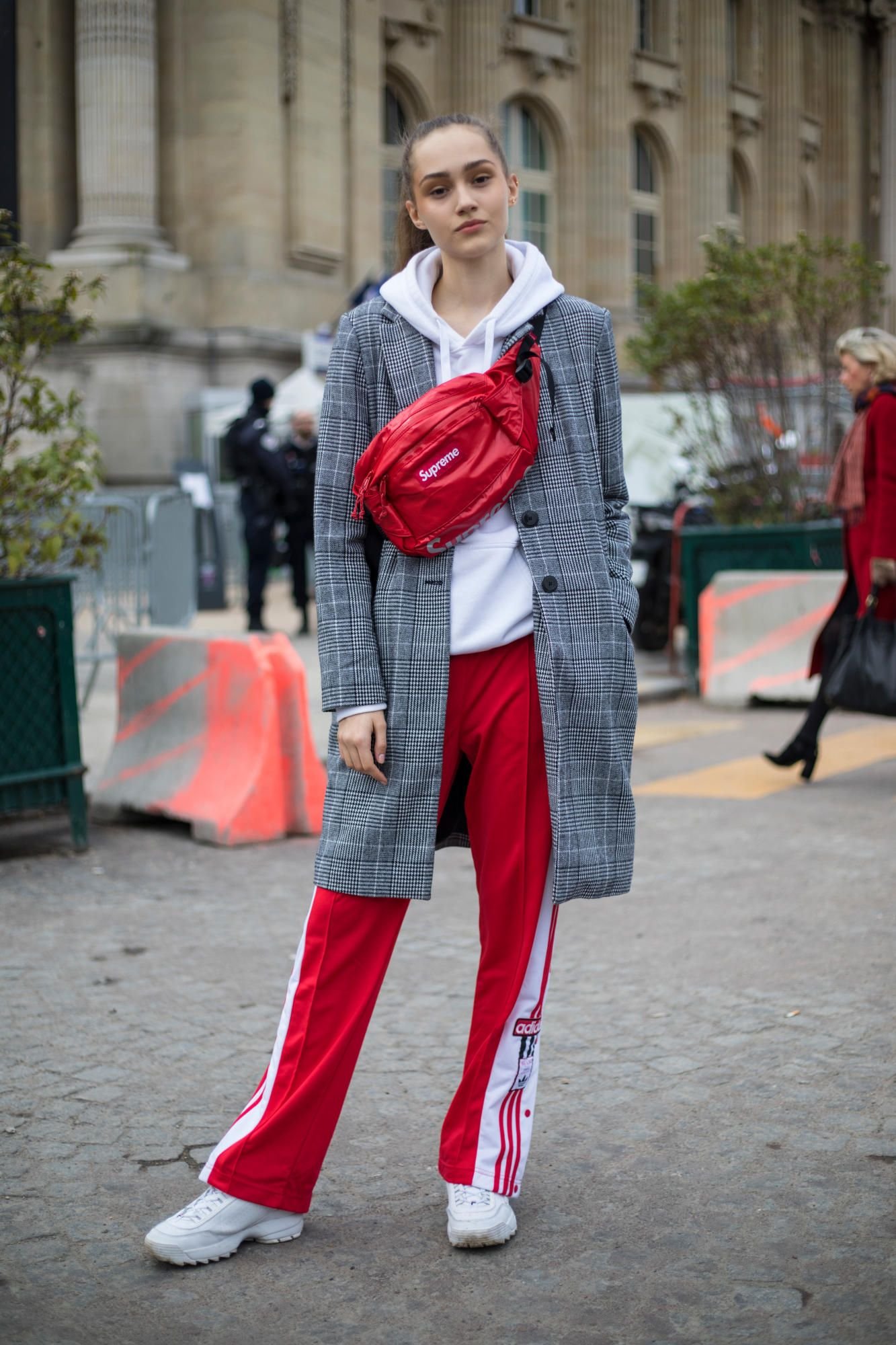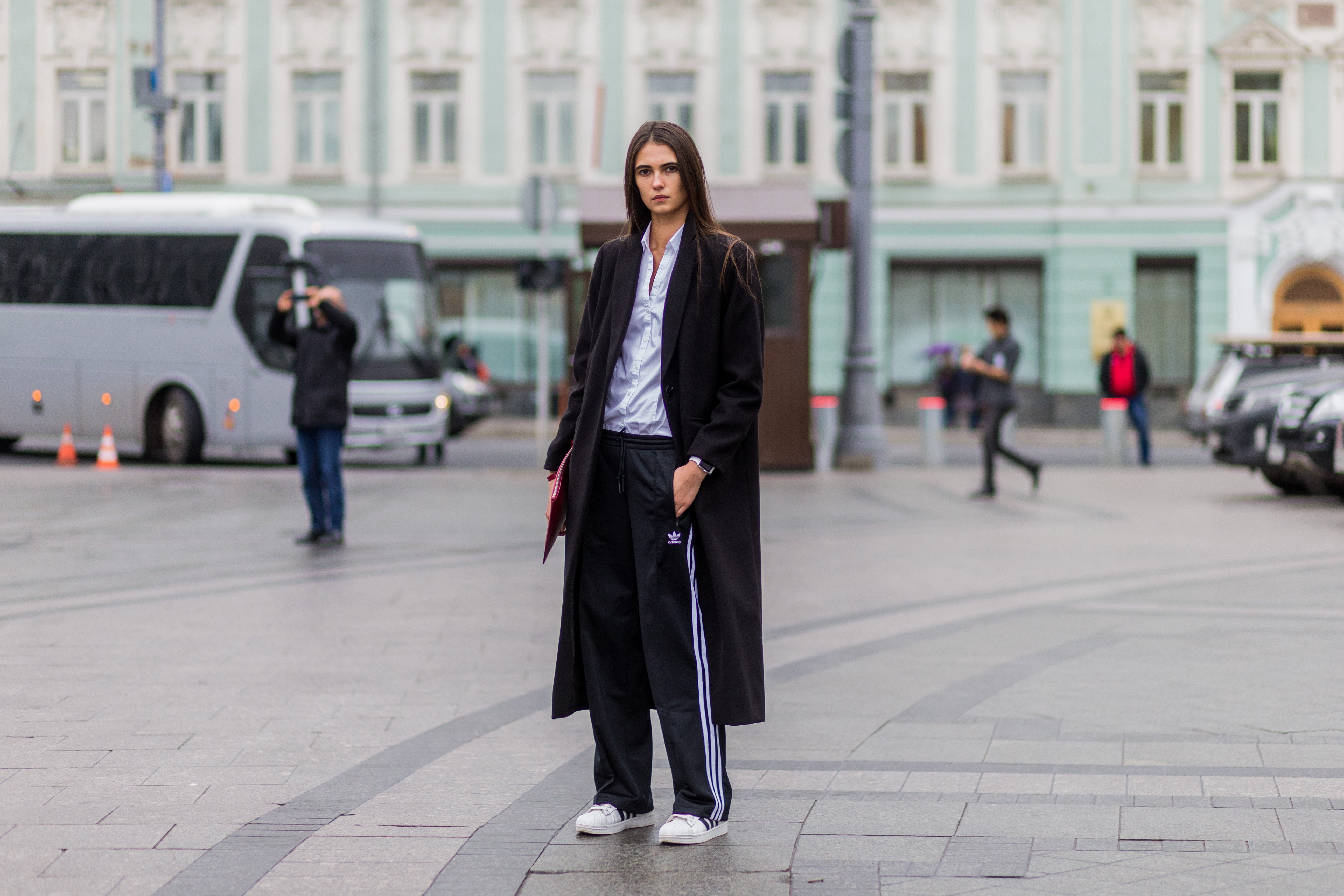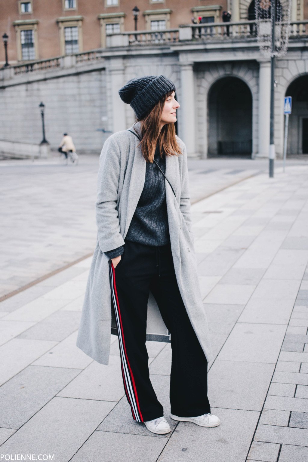 Модное пальто с кроссовками