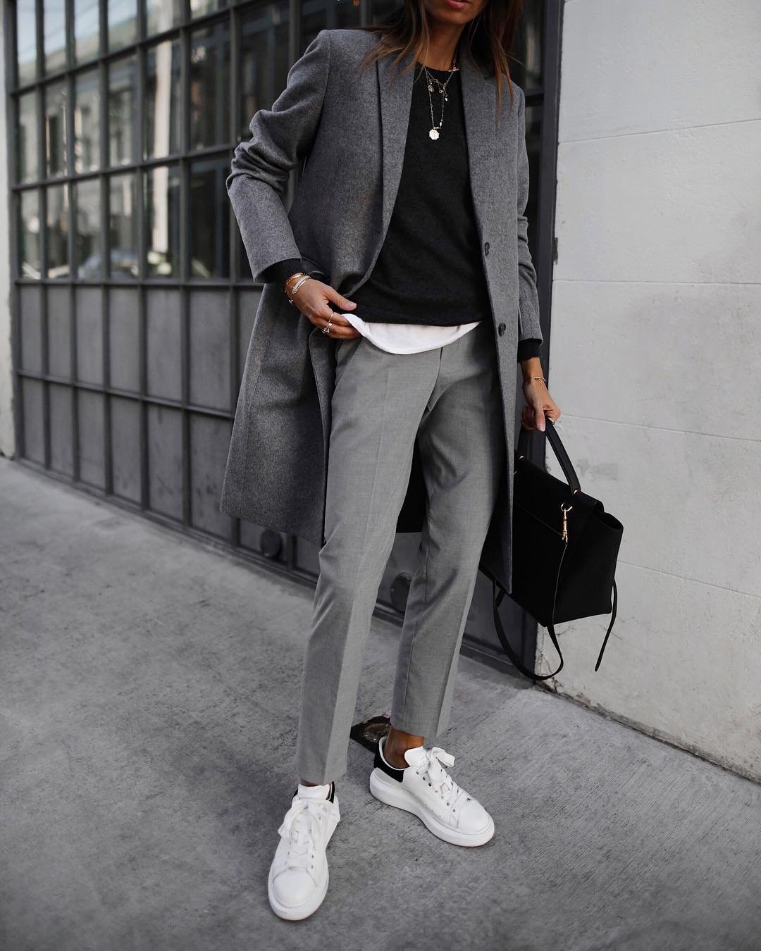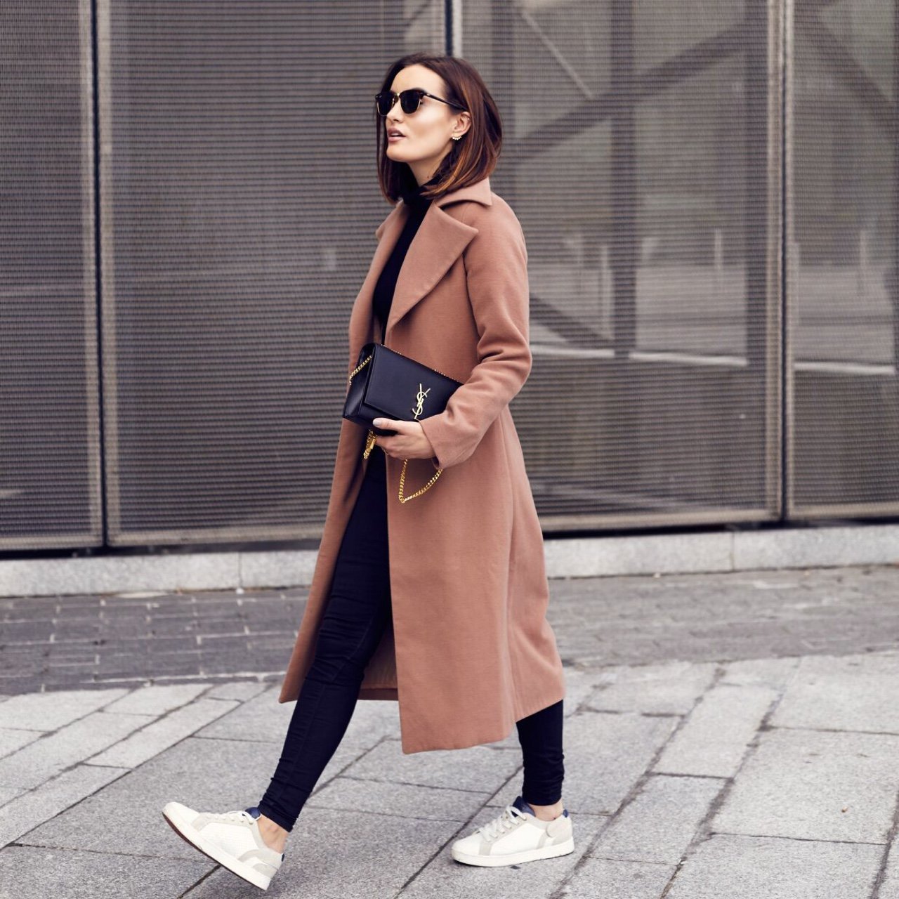Элегантный образ пальто с кроссовками