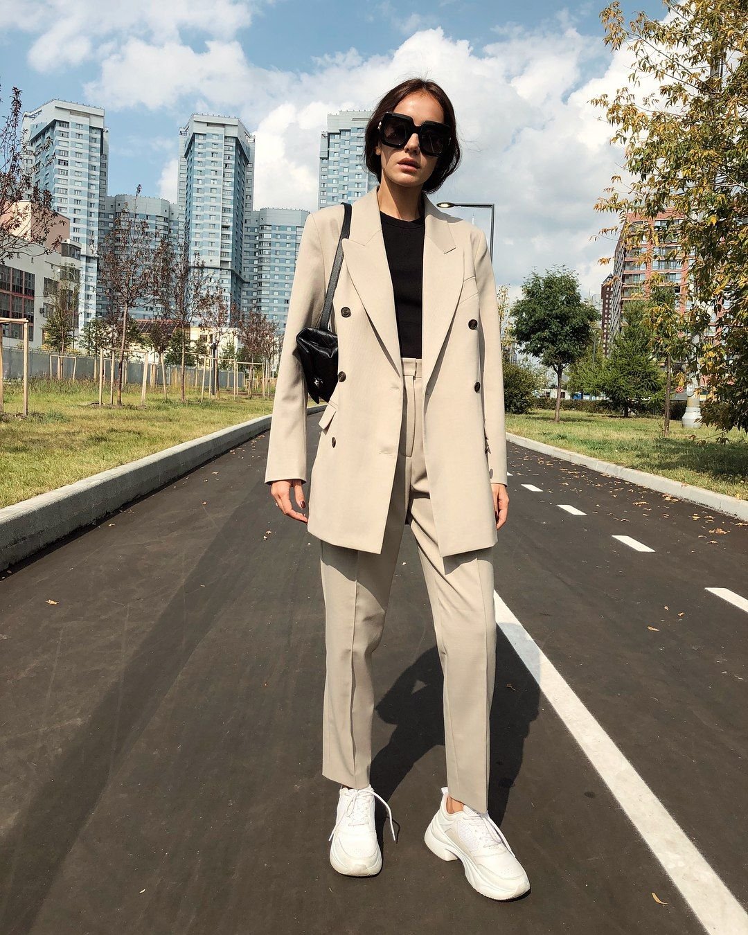 Брючный костюм с кроссовками