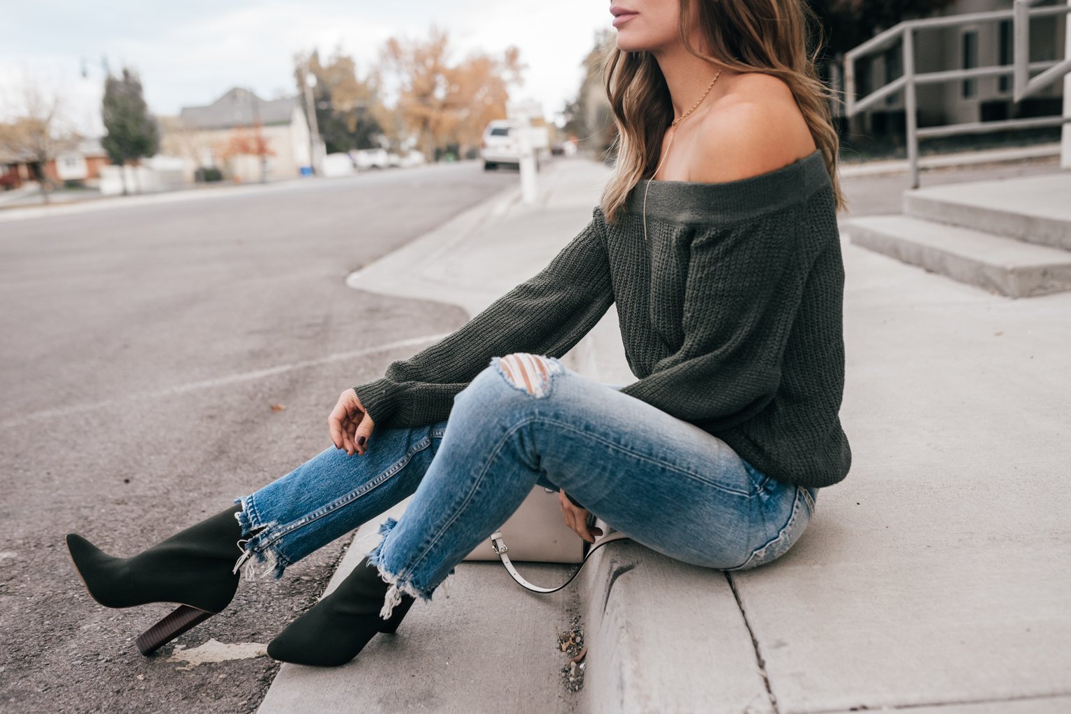 Девушка в свитере и джинсах