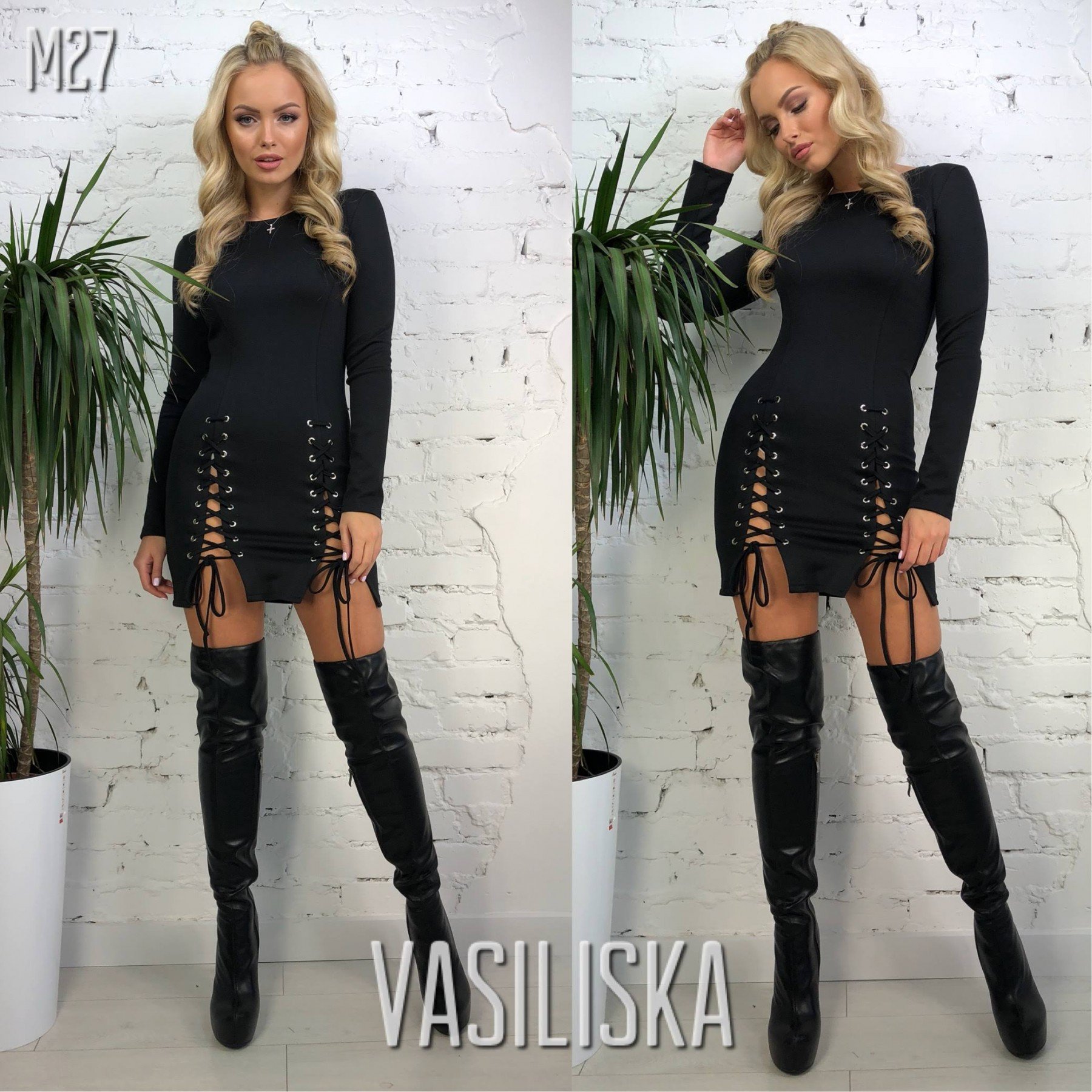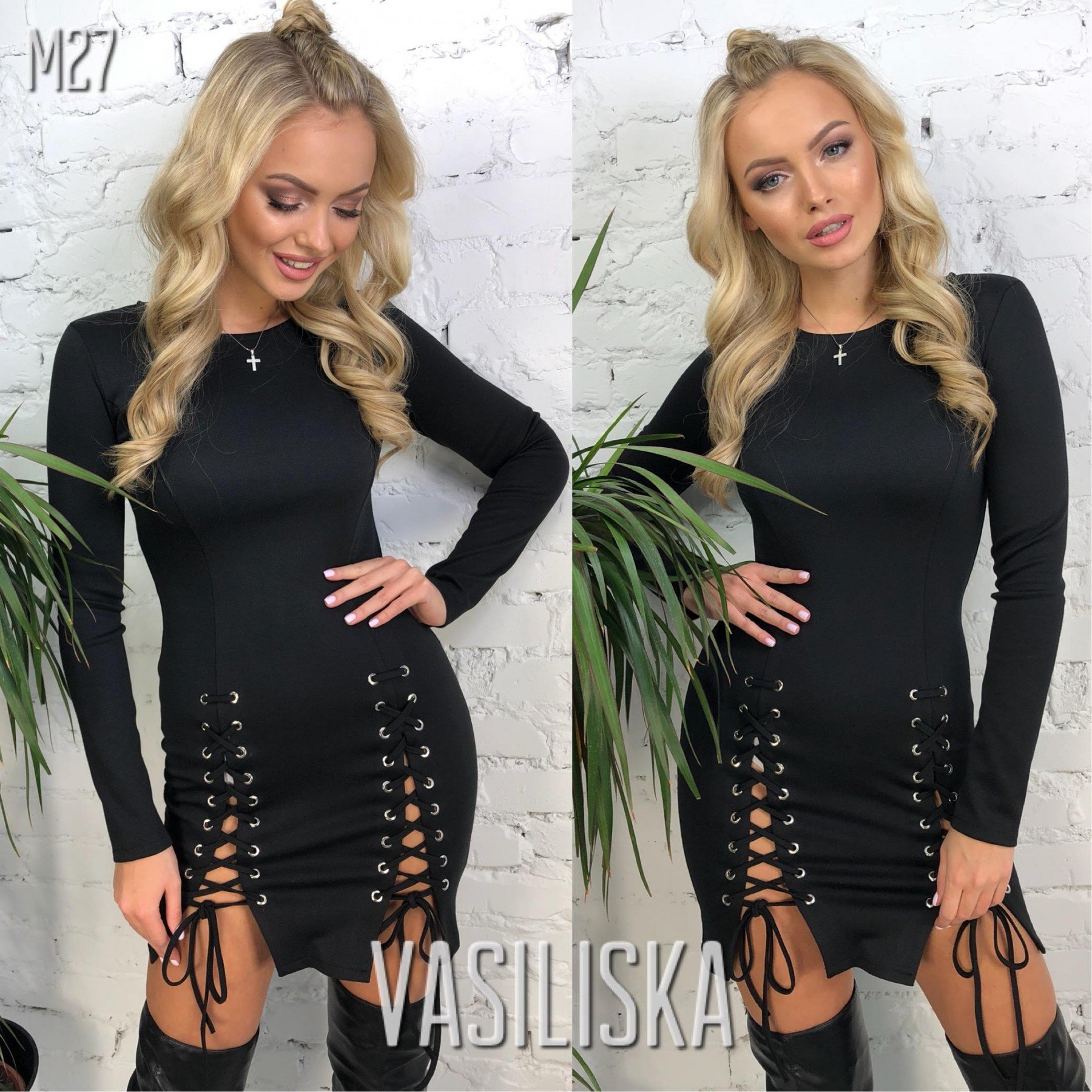 Черное платье со шнуровкой