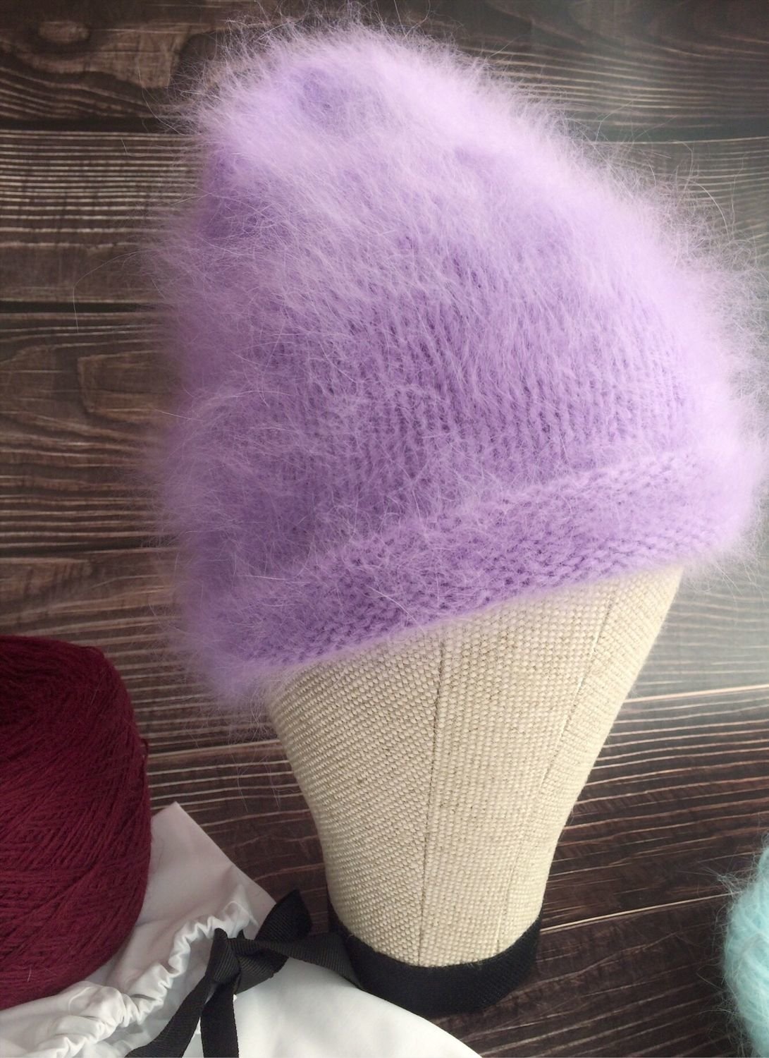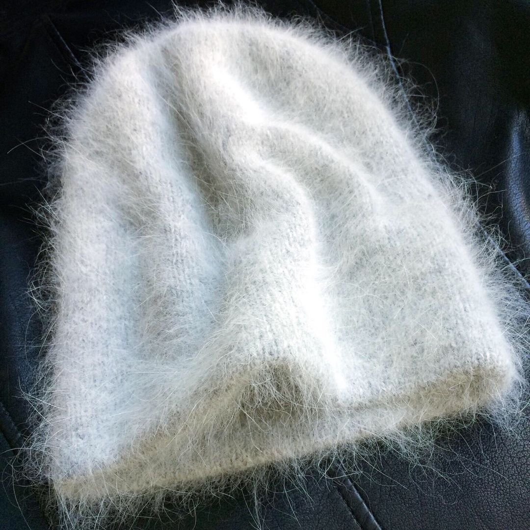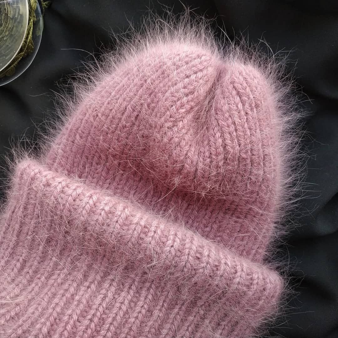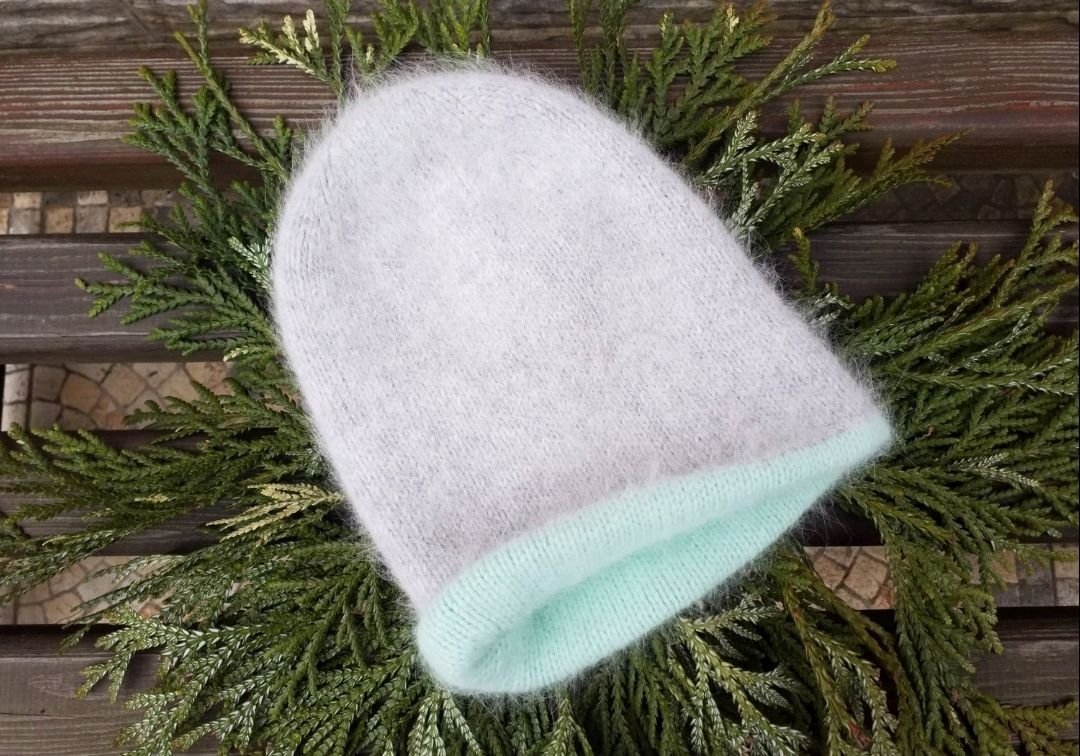 Двойная шапка бини из пуха норки на круговых спицах видеоурок