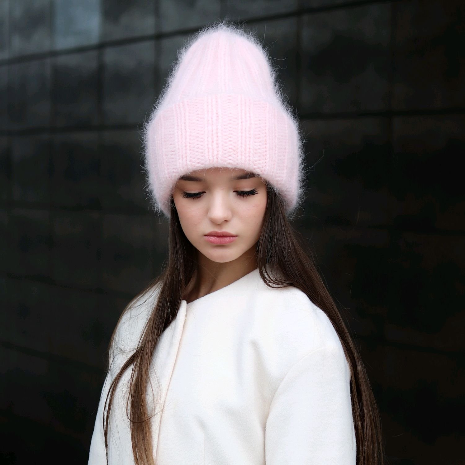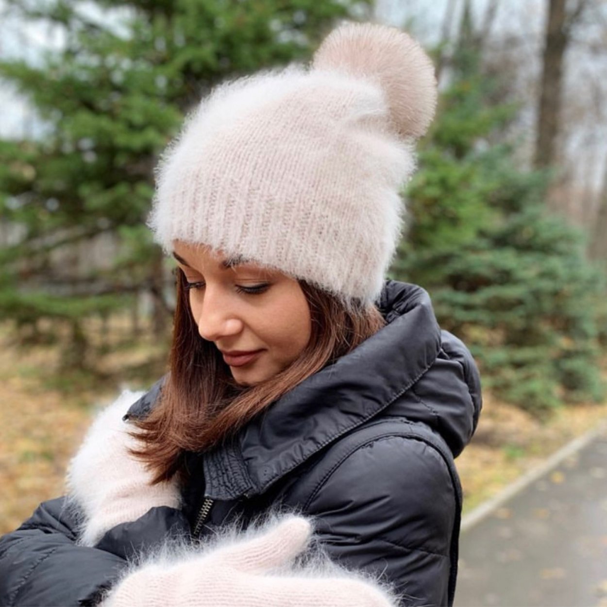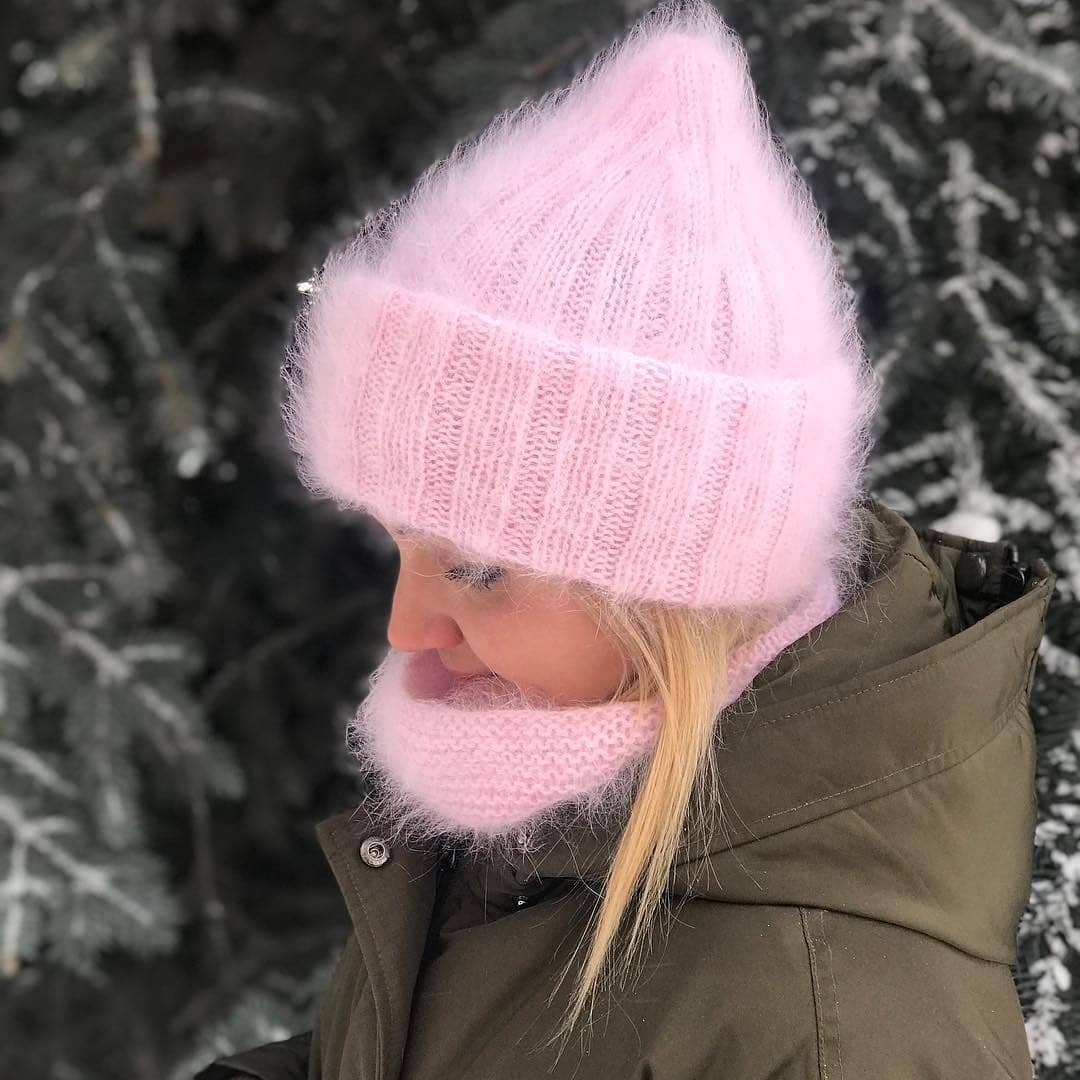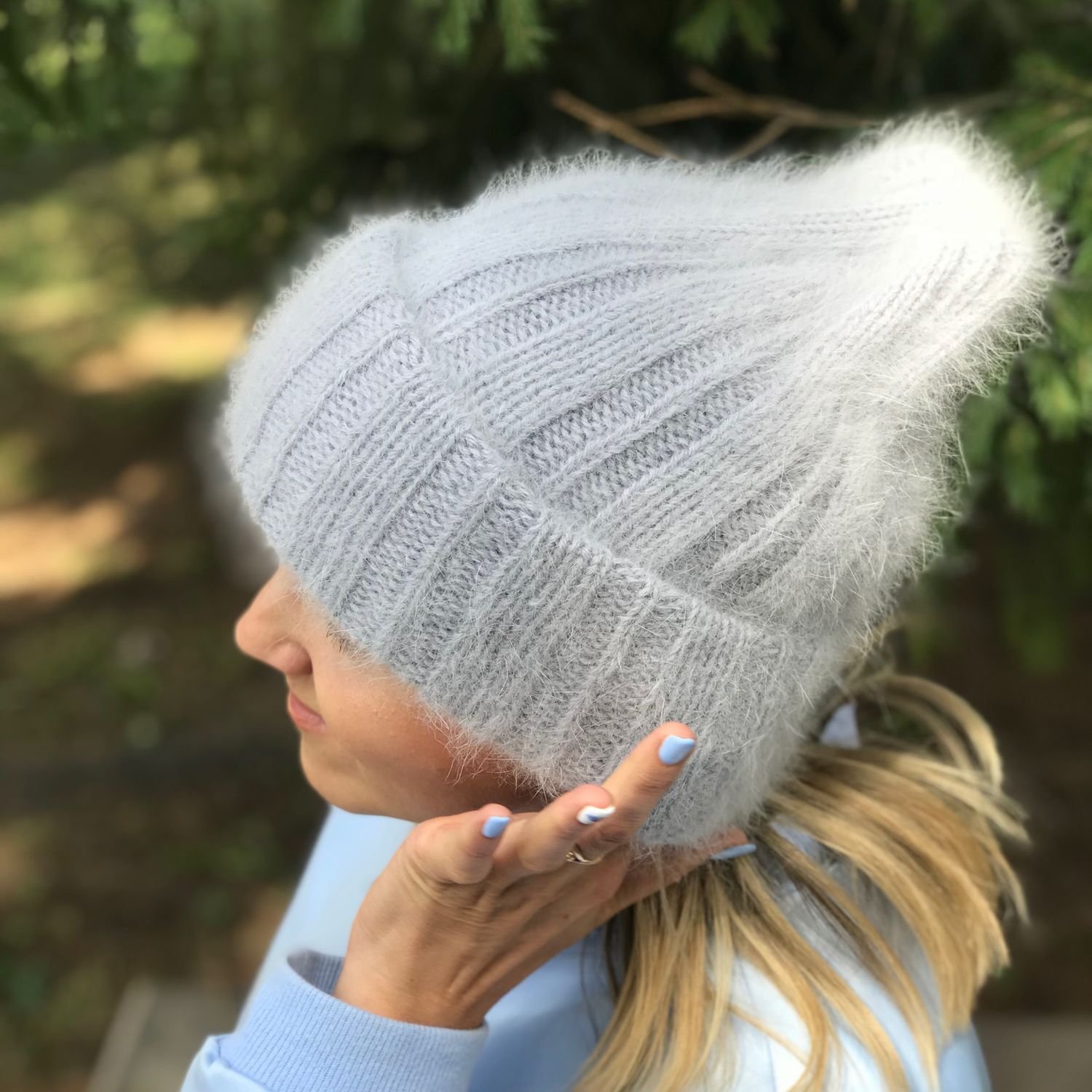 Двойная шапка бини из пуха норки на круговых спицах видеоурок
