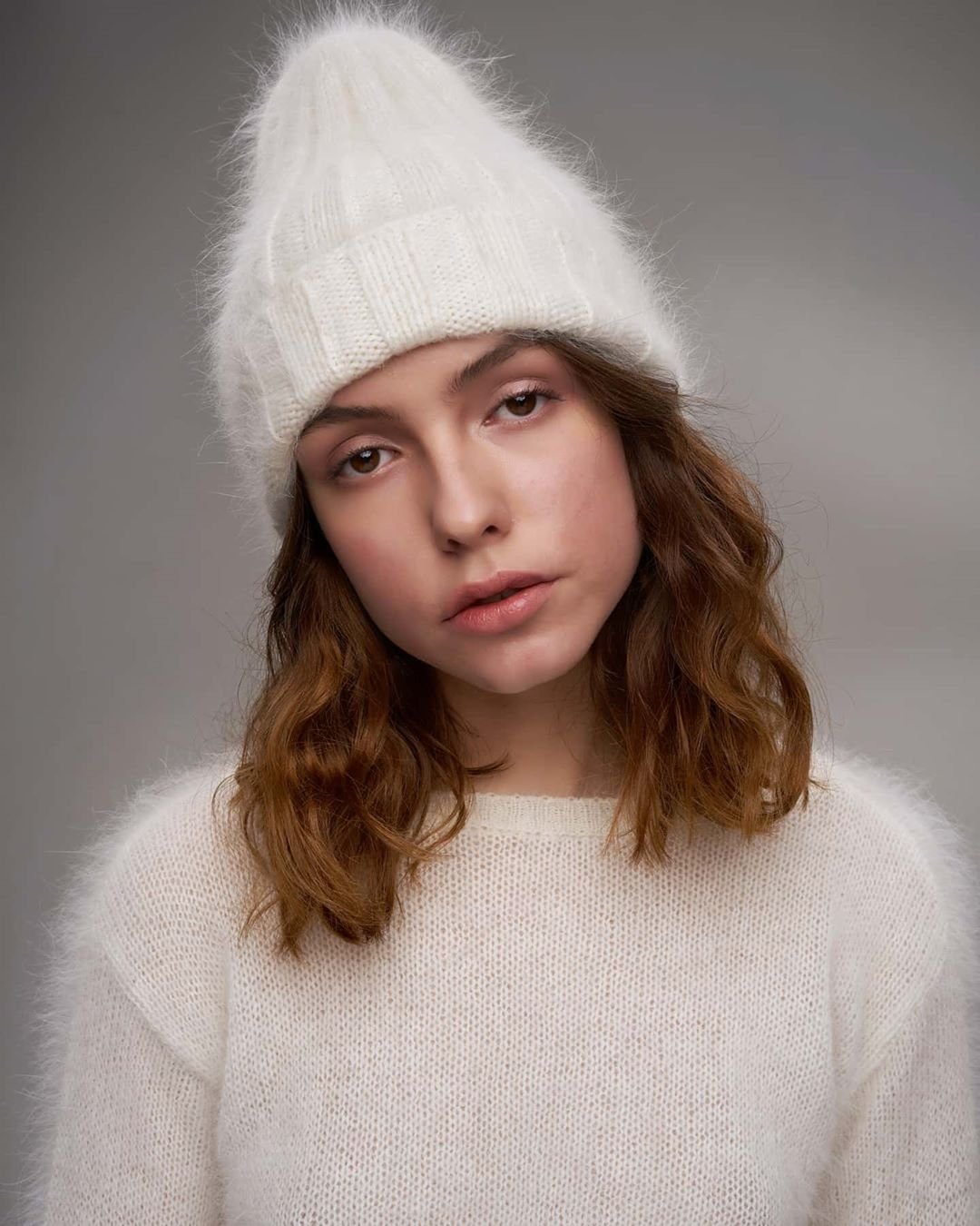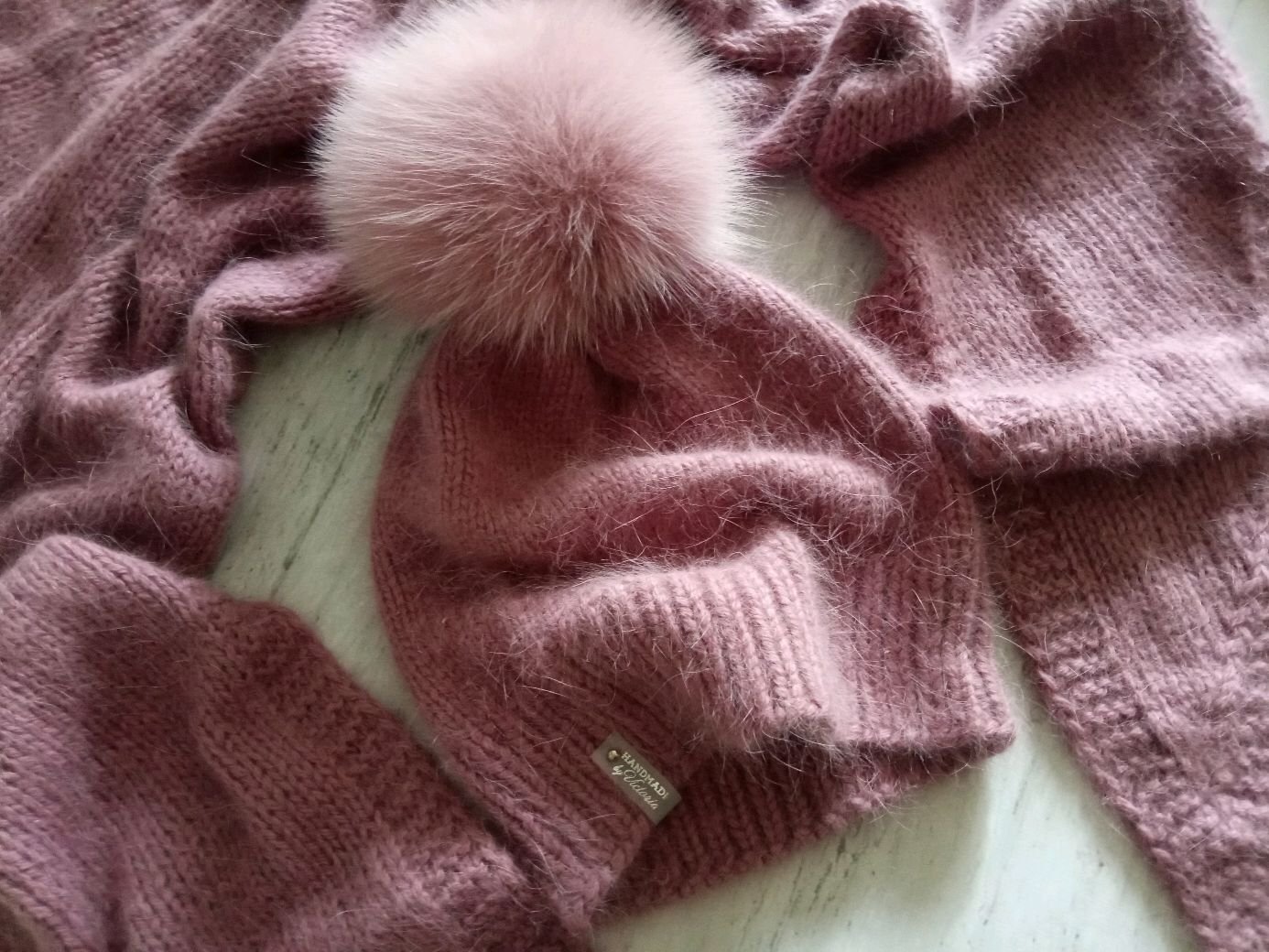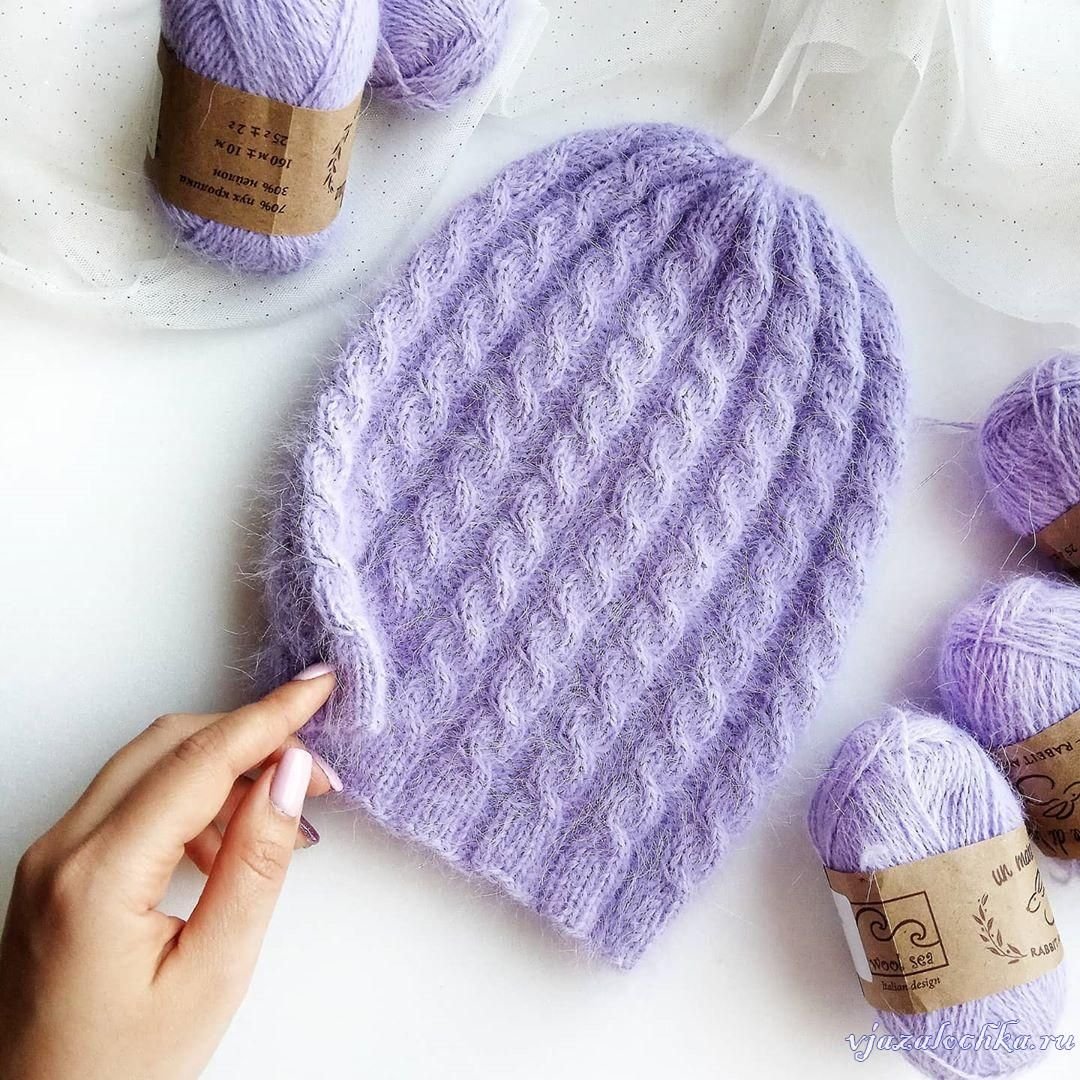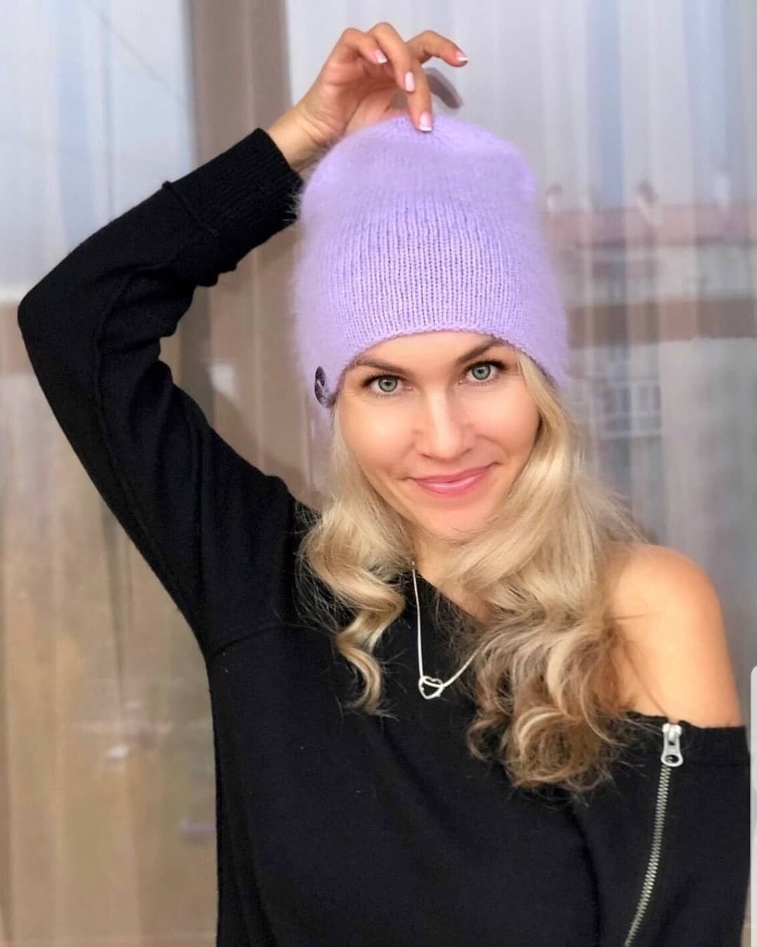 Двойная шапка бини из пуха норки на круговых спицах видеоурок