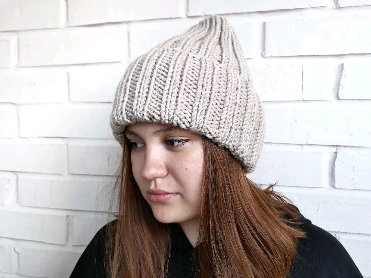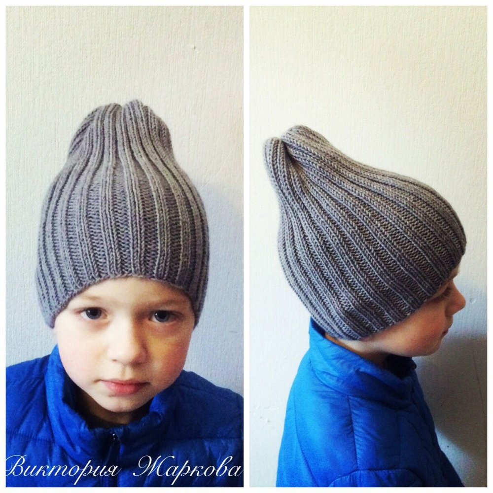 Шапка резинкой 2х2 с удлиненной макушкой