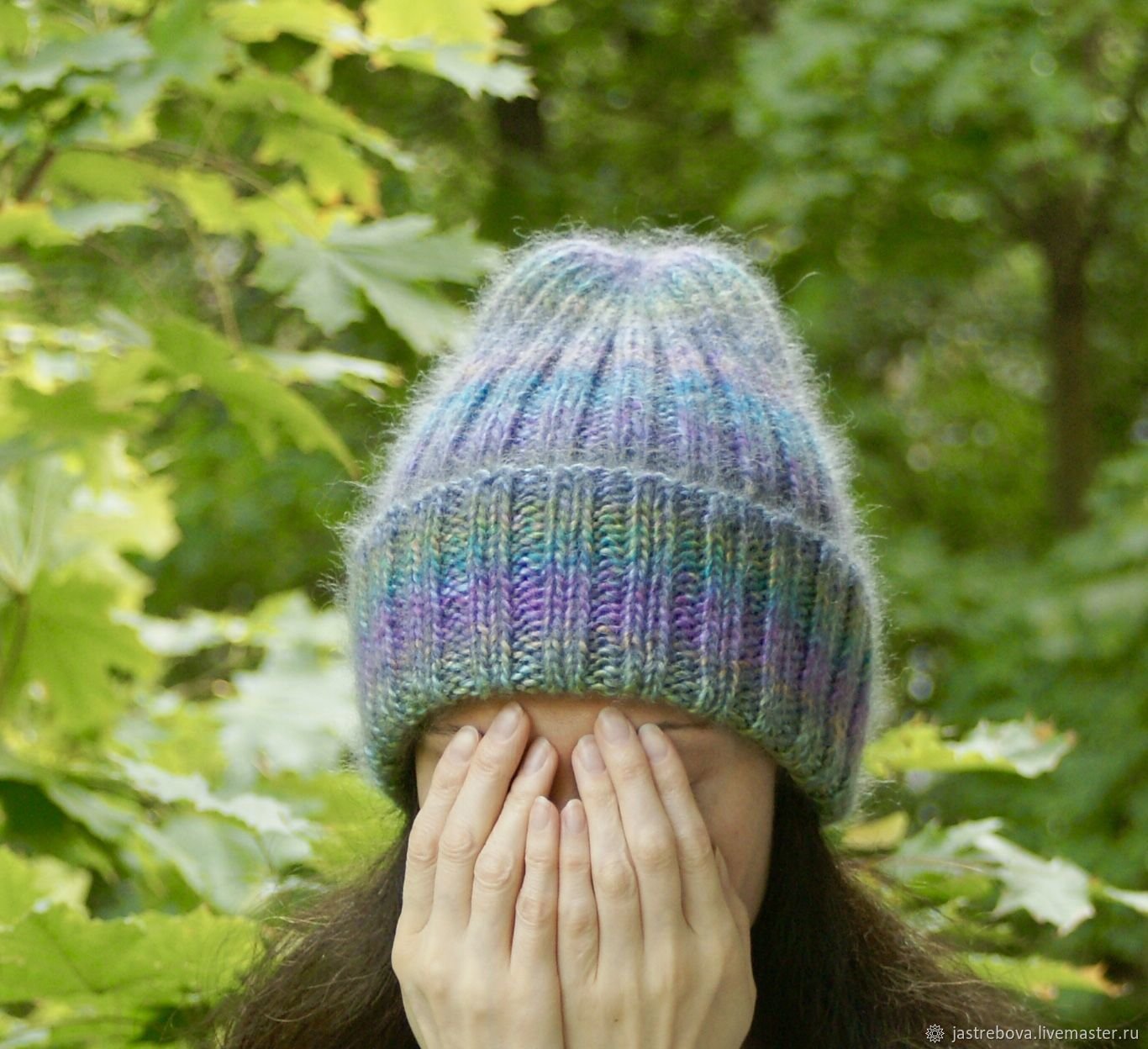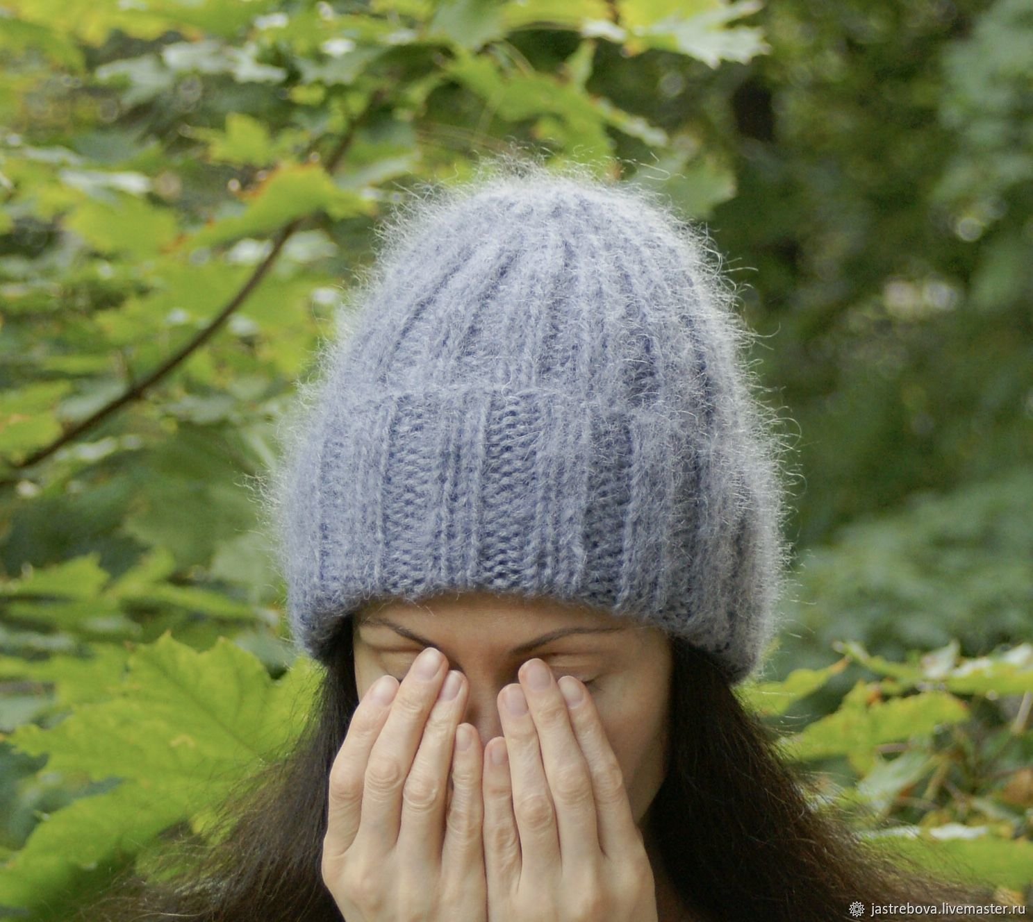Шапка из мохера резинкой 2x2